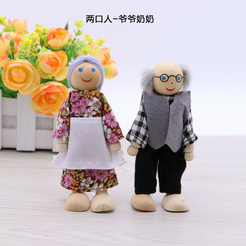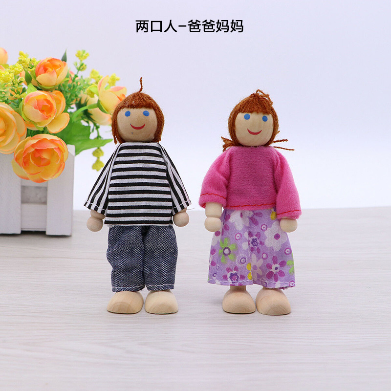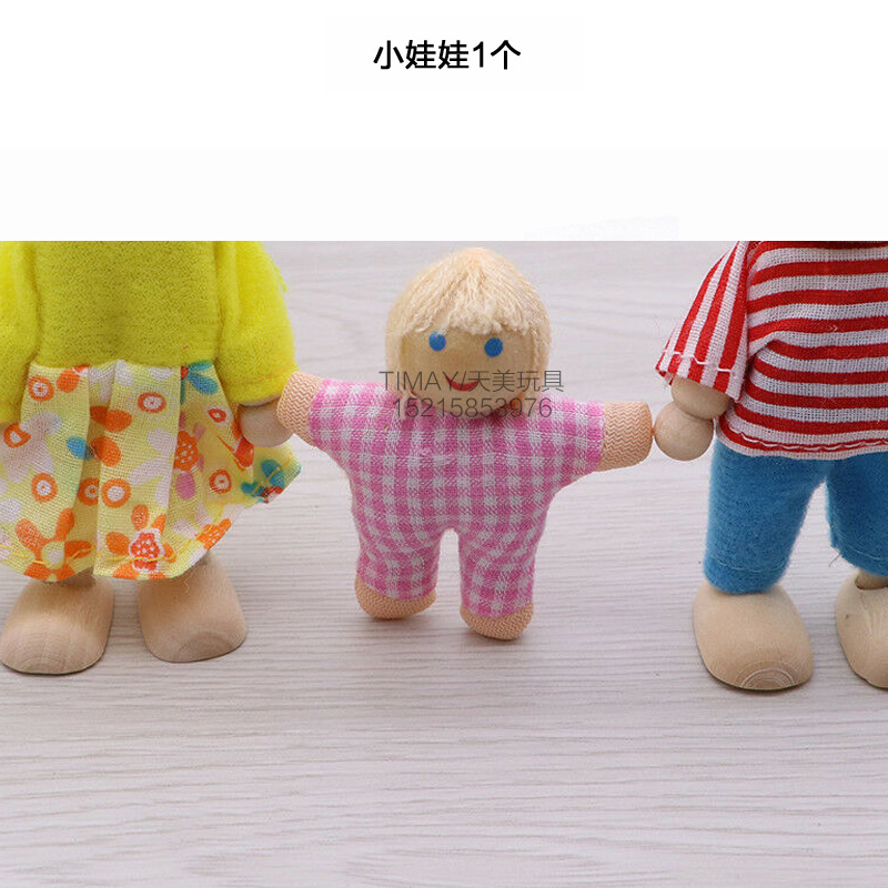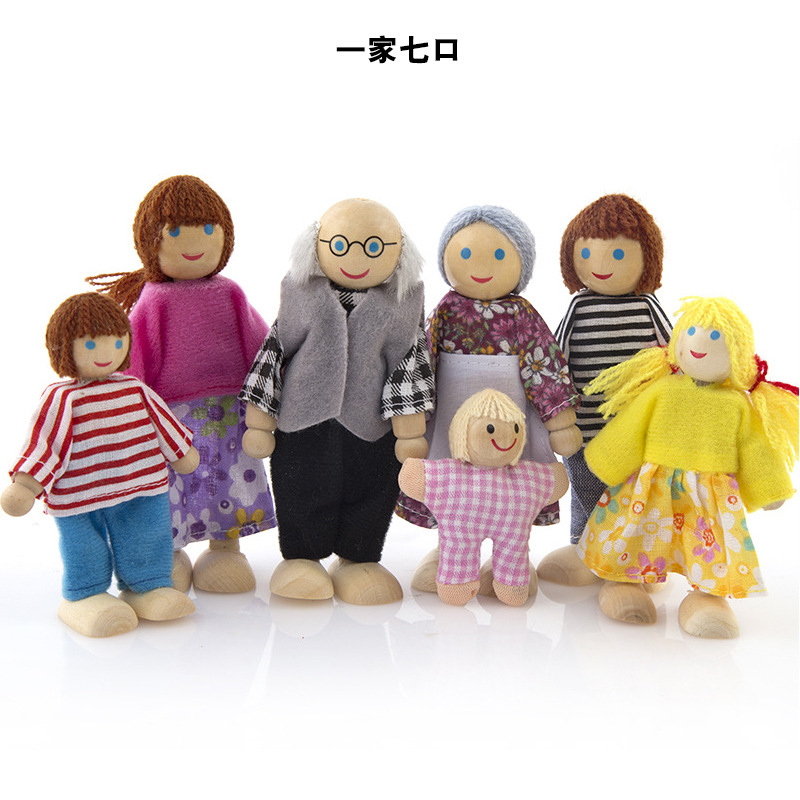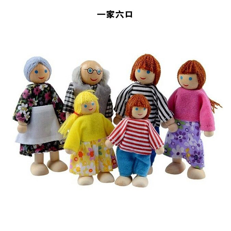 儿童一家人木偶玩具木制过家家玩偶可动关节仿真迷你6口7口人偶