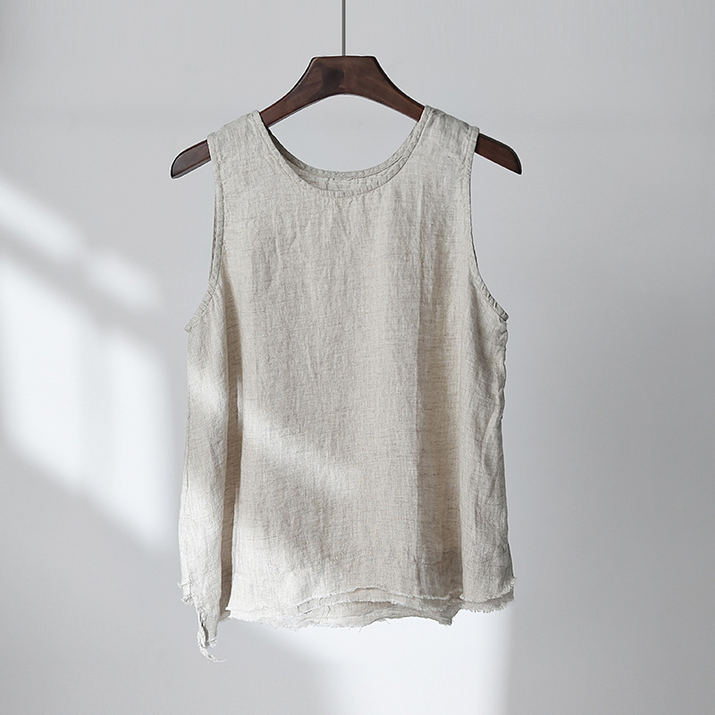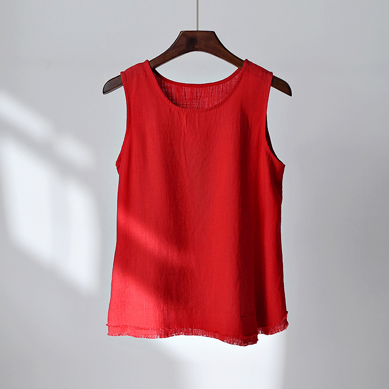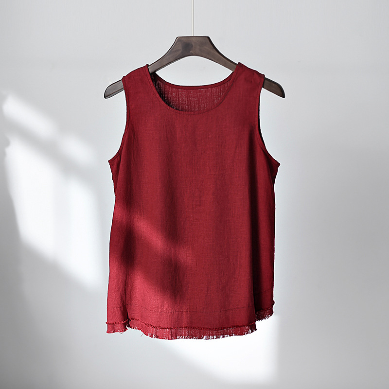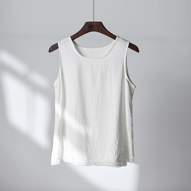2026 봄/여름 신상 코튼 린넨 여성복, 예술적인 레트로 린넨 프린지 캐미솔 탑, 여성용 베이스 레이어 조끼스토어 가기