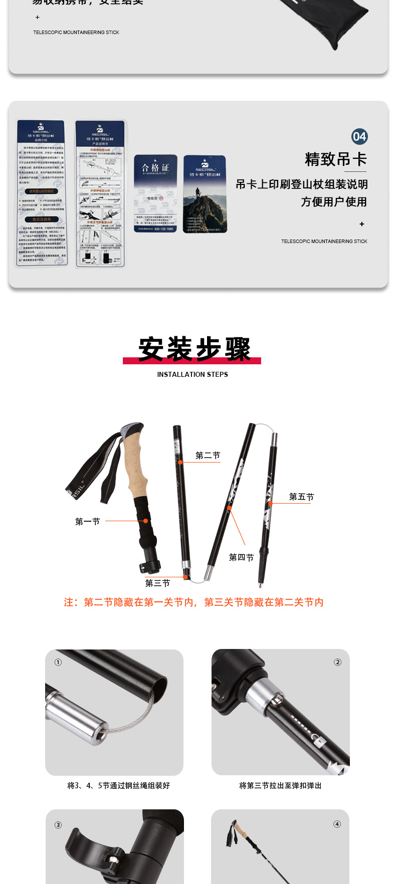 뉴캐슬 폴딩 스틱 7075 등산 스틱 초경량 알루미늄 합금 5 섹션 접이식 스틸 볼 잠금 N88스토어 가기