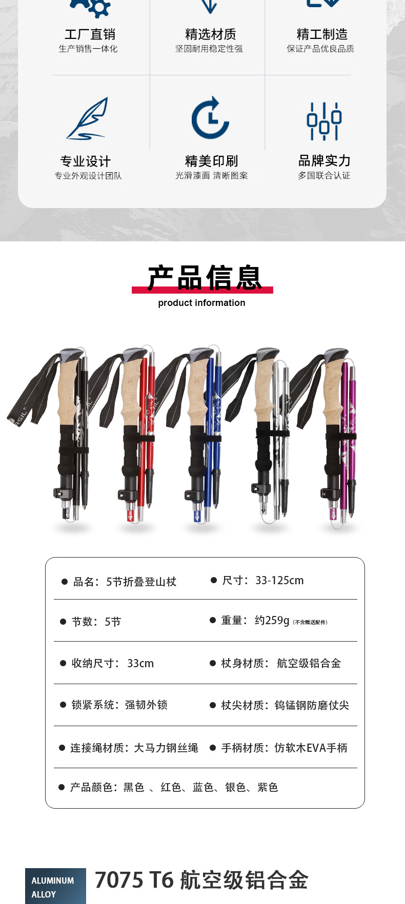 一根登山杖带配件重量:307g