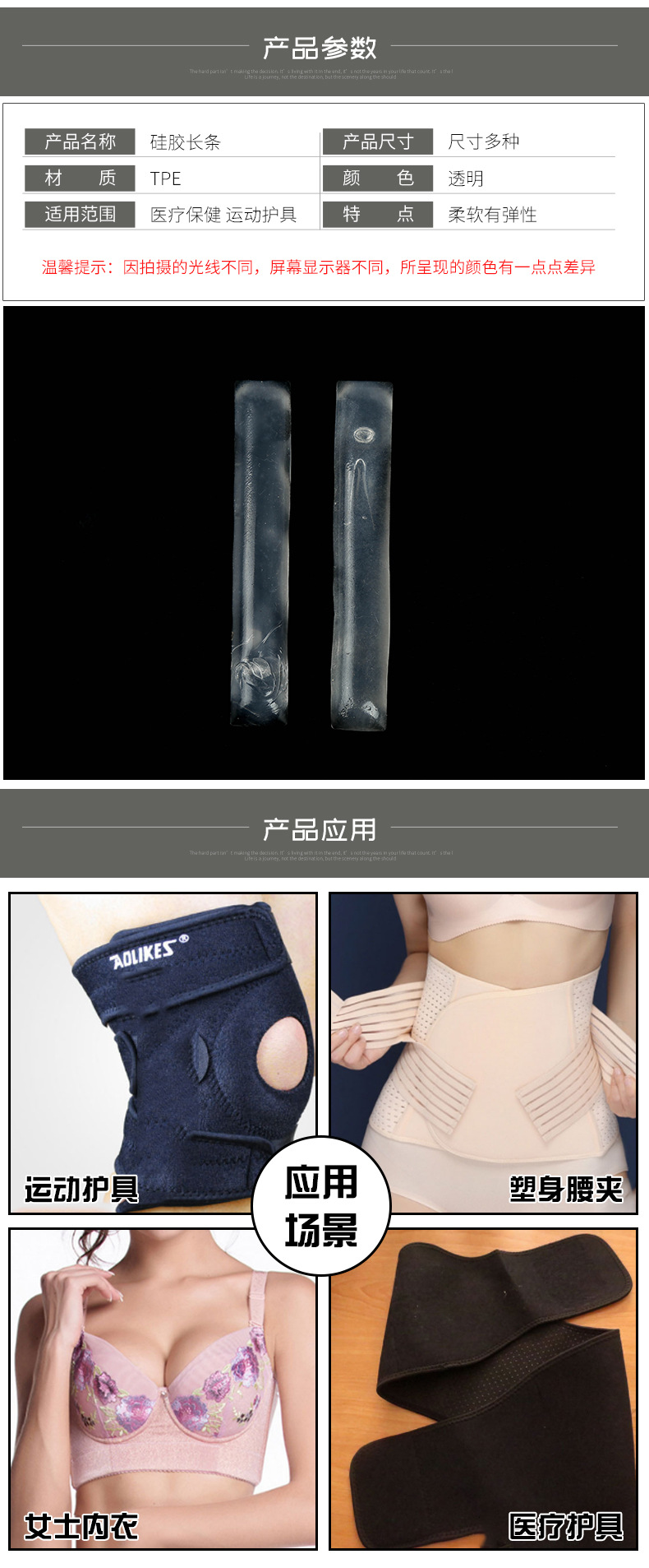 TPE 스포츠 무릎 뼈 보호 기어 실리콘 스트립 재고 야외 스포츠 투명 반죽 실리콘 스트립