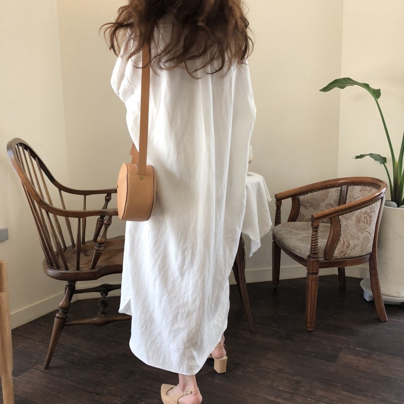 2023 한국 게으른 스타일 슈퍼 롱 셔츠 롱 원피스 코튼 린넨 자외선 차단제 오버 니 셔츠 원피스스토어 가기