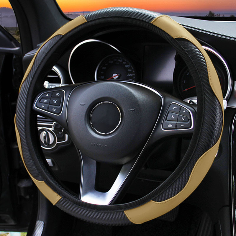 14.5-15 인치 보편적 인 여성에게 적합한 내부 링 스티어링 휠 커버가없는 탄소 섬유 가죽 편안한 내마모성 자동차 액세서리스토어 가기