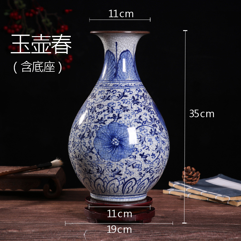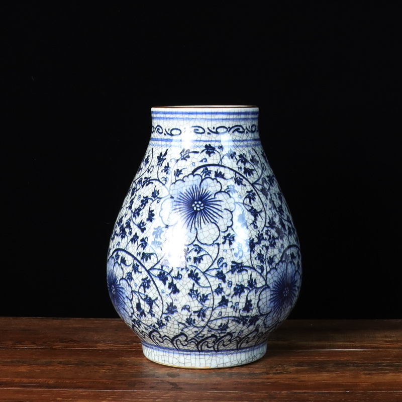 경덕진 수제 청화백자 꽃병 가정 거실 중국식 크랙 글레이즈 공예품 세라믹 레트로 장식품