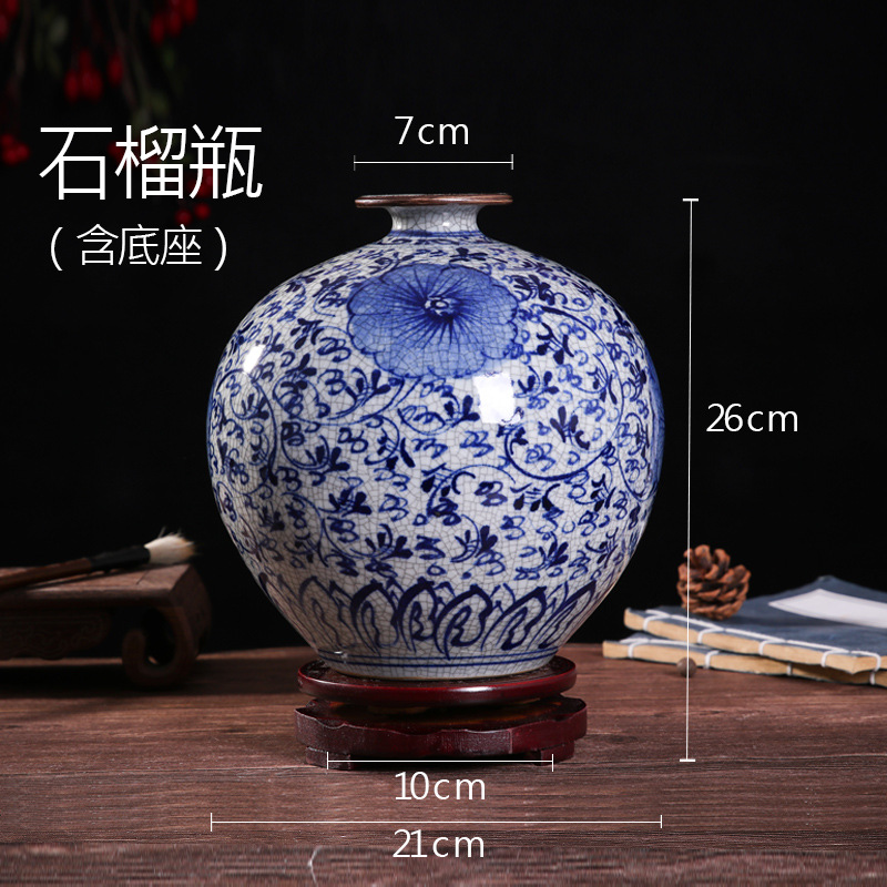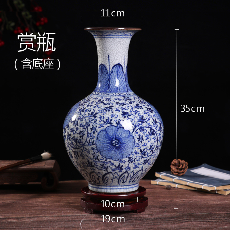 경덕진 수제 청화백자 꽃병 가정 거실 중국식 크랙 글레이즈 공예품 세라믹 레트로 장식품스토어 가기