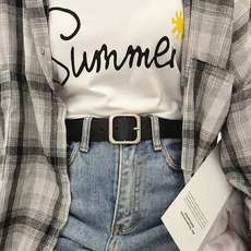 비 천공 스퀘어 버클 여성용 벨트 여성용 심플 모든 매치 한국 레트로 패션 블랙 팬츠 한국 스타일 학생 벨트 여성스토어 가기