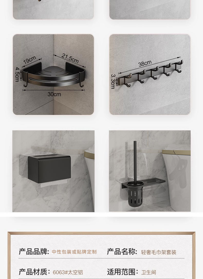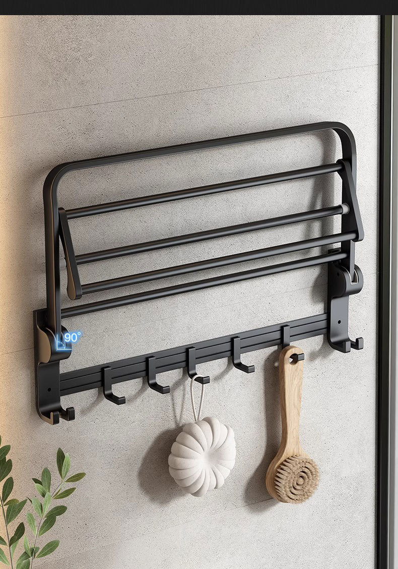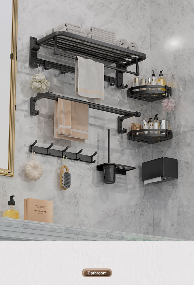 욕실 비 천공 검은 공간 알루미늄 욕실 하드웨어 펜던트 세트 욕실 수건 걸이 수건 걸이스토어 가기