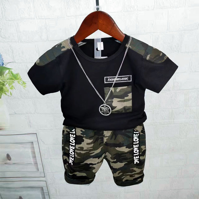 남자의 아기 여름 2023 새로운 3 아이들의 반팔 위장 세트 5 소년 6 여름 위장 의류 반팔 세트