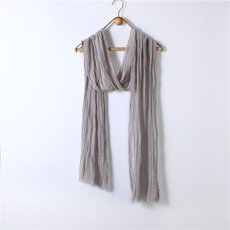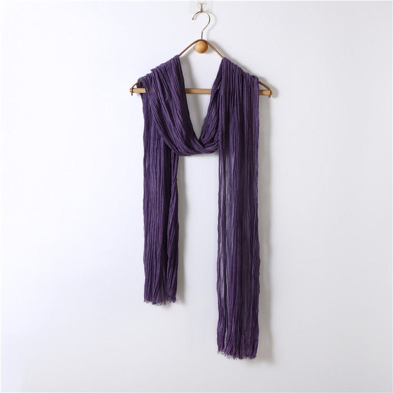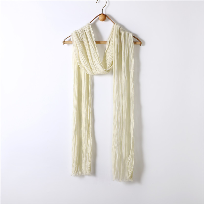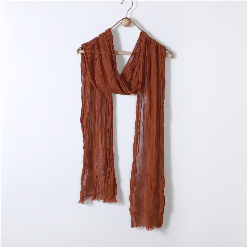 봄과 여름 솔리드 컬러 워싱 젠 모든 매치 태슬 타이 염색 코튼 슬림 리본 스카프 플리츠 코튼 린넨 스카프스토어 가기