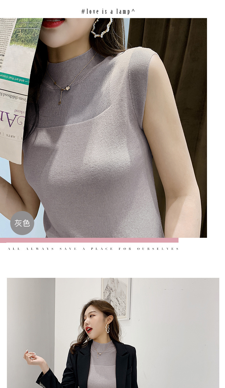 조끼 여성용 여름 겉옷 짧은 모든 경기 니트 베이스 셔츠 느슨한 내부 민소매 탑