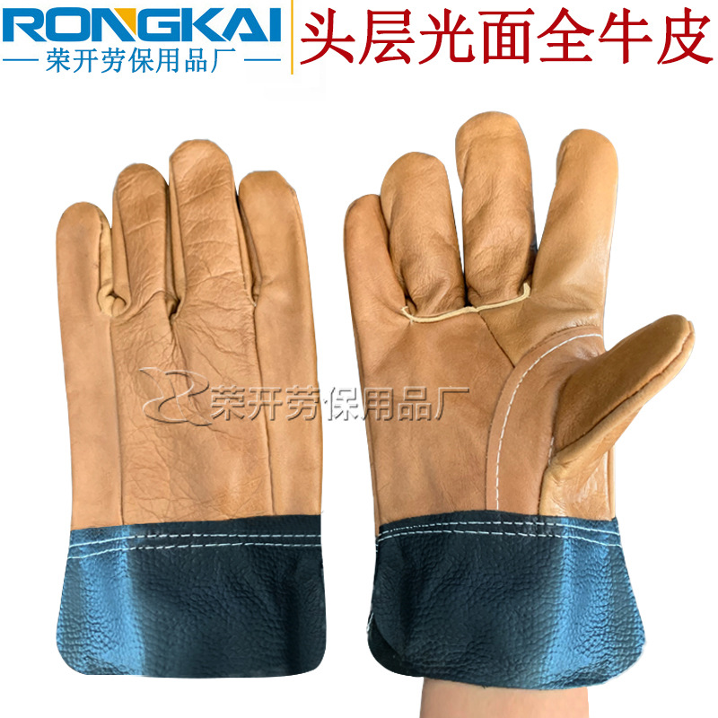 첫 번째 레이어 부드러운 전체 소가죽 용접 장갑 짧은 부드러운 가죽 내마모성 용접기 취급 노동 보호 장갑 도매