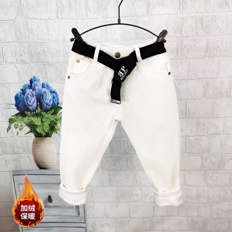 봄과 가을 소년 흰색 레깅스 한국식 슬림핏 아동복 검은 바지 캐주얼 바지 가을과 겨울 두꺼운 따뜻한 바지스토어 가기