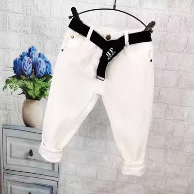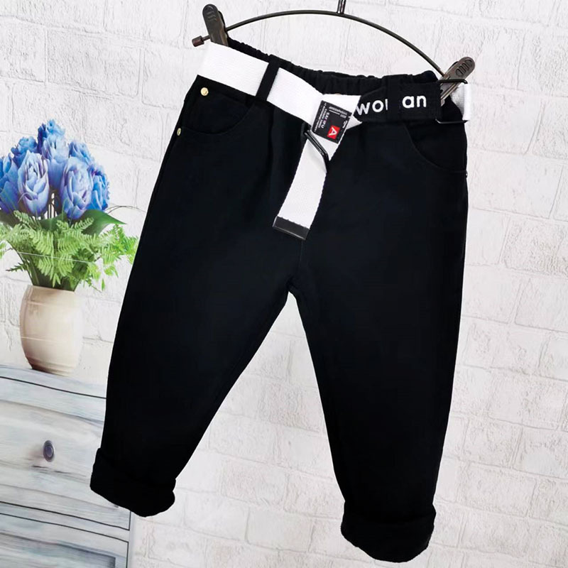 봄과 가을 소년 흰색 레깅스 한국식 슬림핏 아동복 검은 바지 캐주얼 바지 가을과 겨울 두꺼운 따뜻한 바지