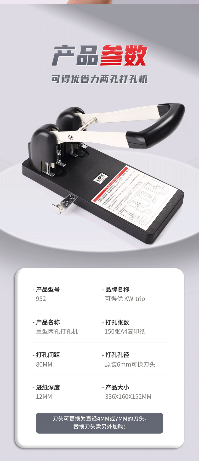 Kedeyou 952 헤비 듀티 2 홀 펀처 파일 파일 파일 두꺼운 레이어 더블 홀 펀처 구멍 바인딩 150 조각