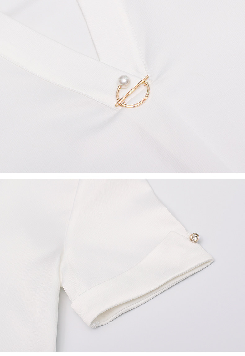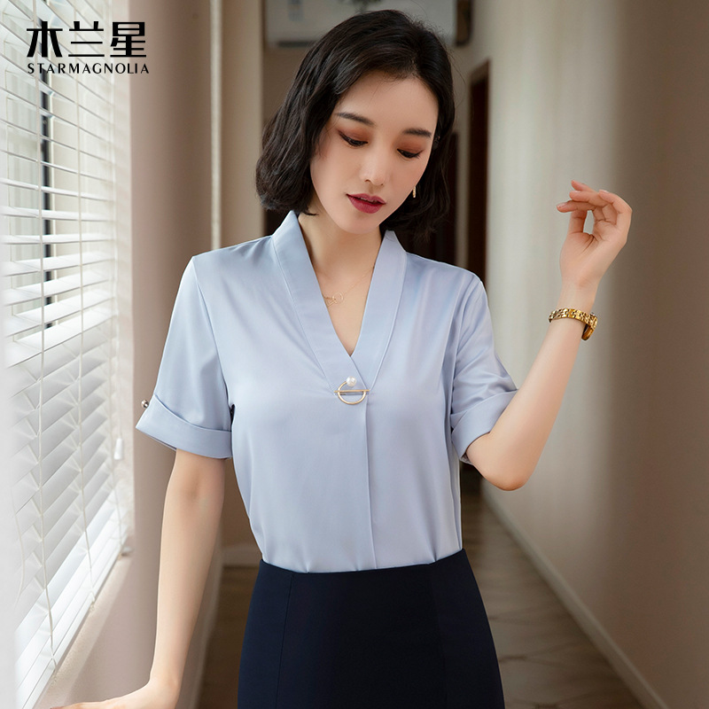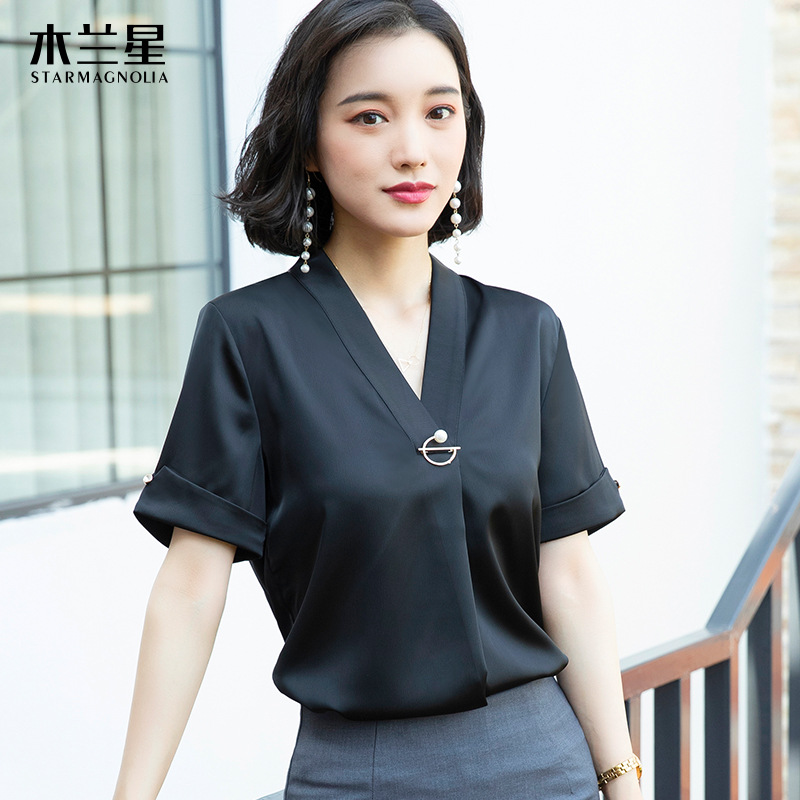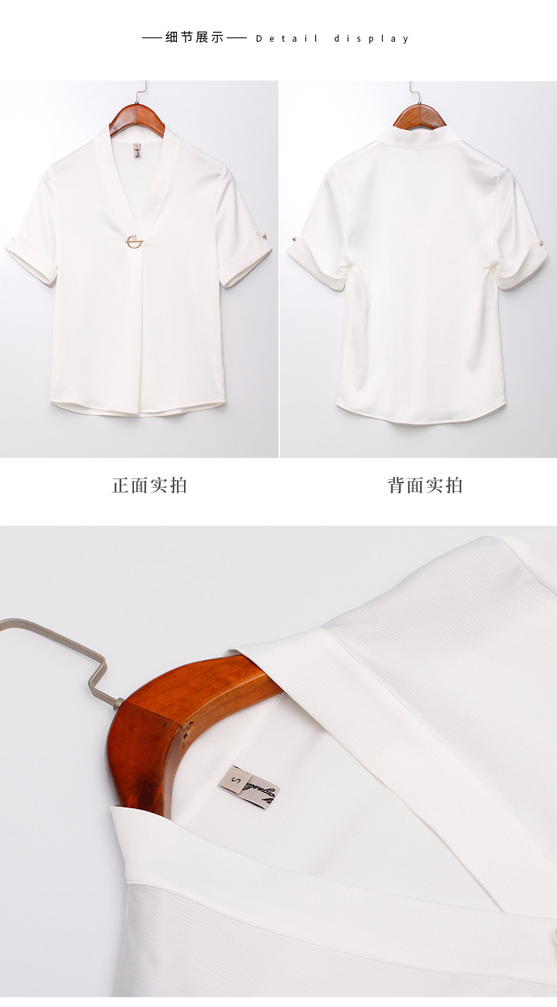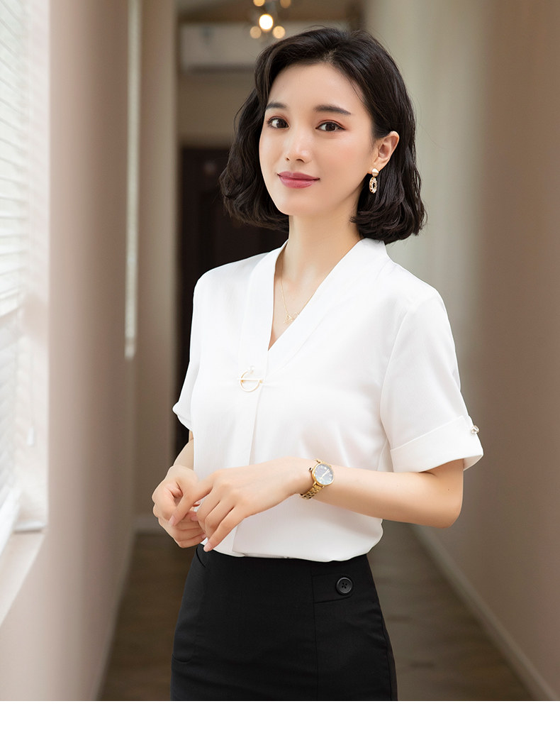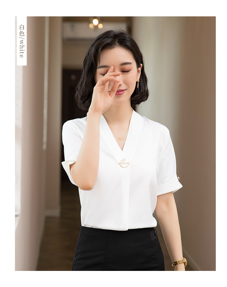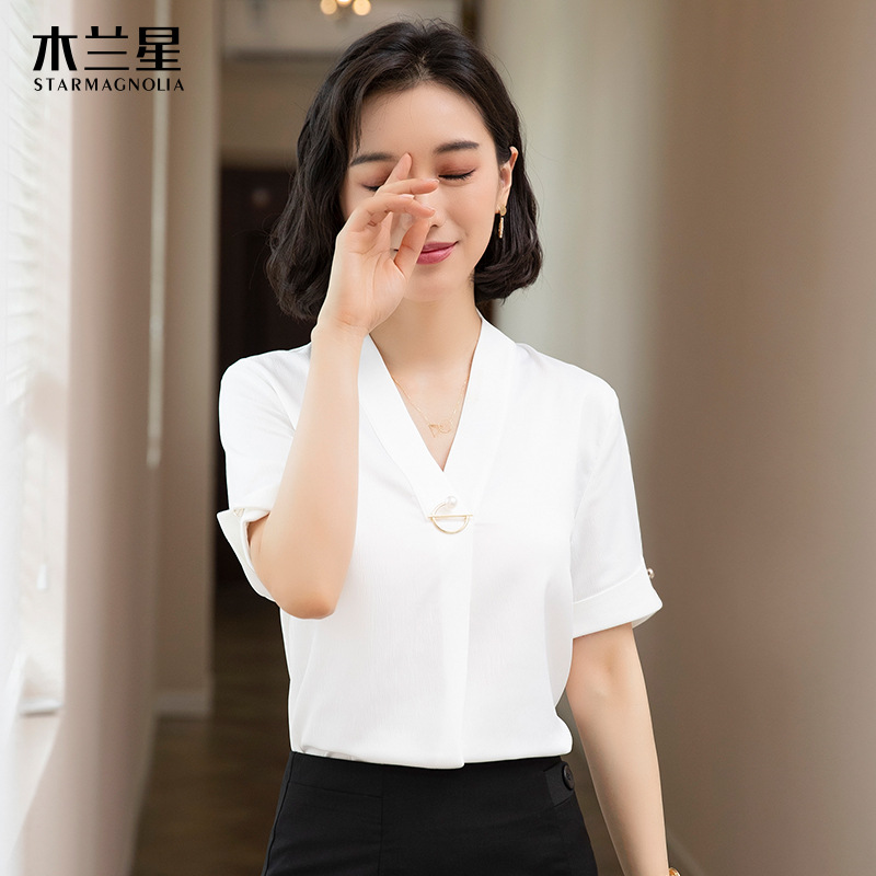 화이트 쉬폰 셔츠 여성 기질 반팔 와이드 파인 여름 패션 새틴 여름 반소매 전문 작업복 화이트 셔츠