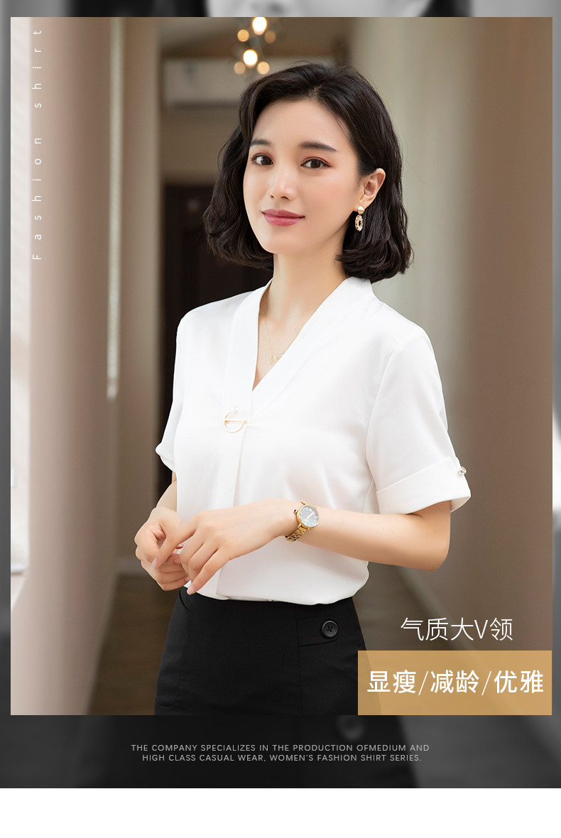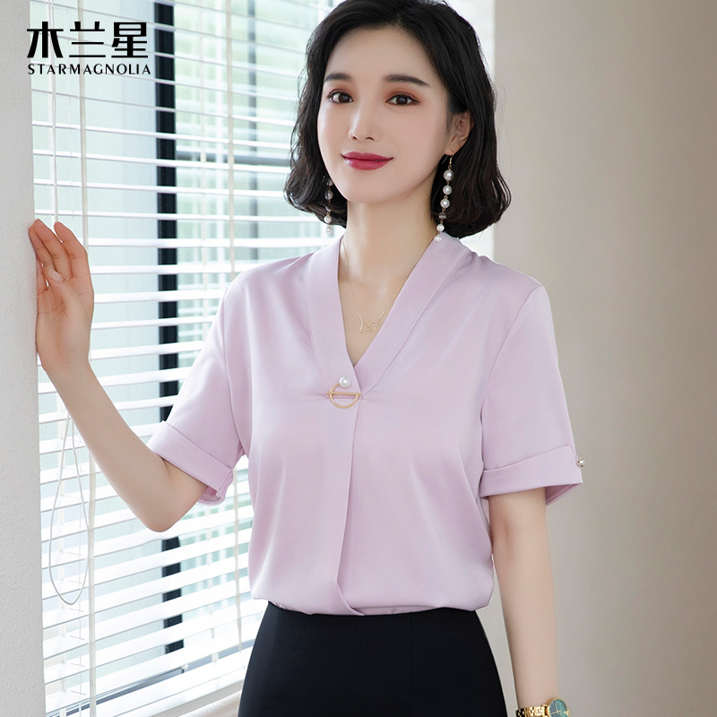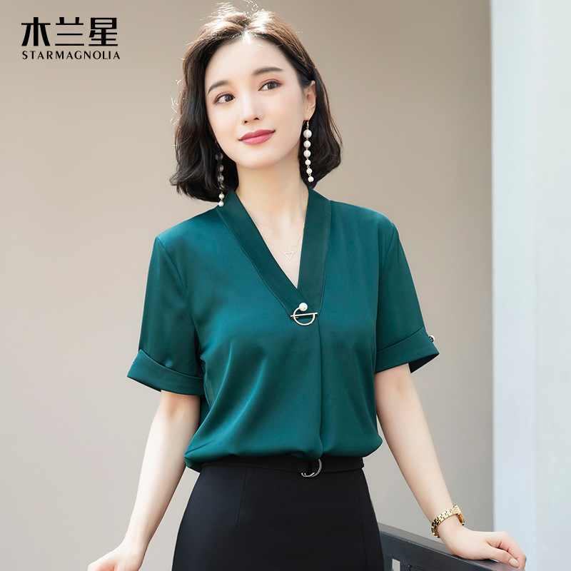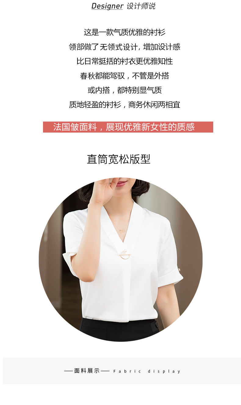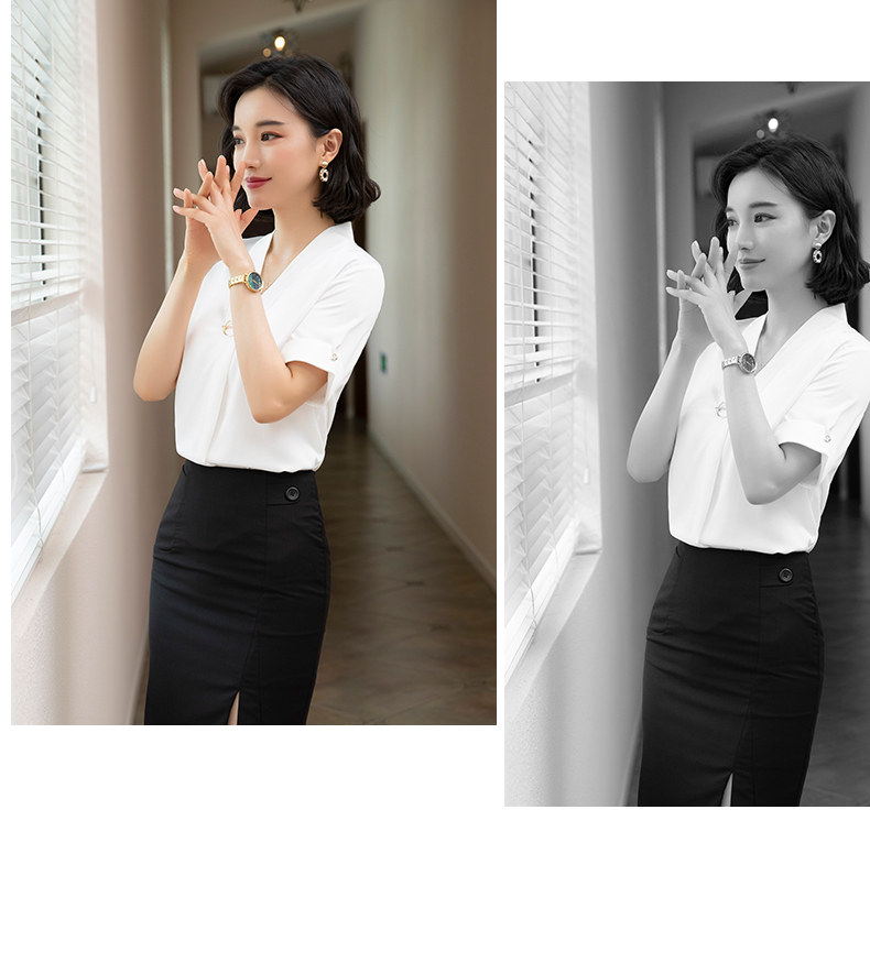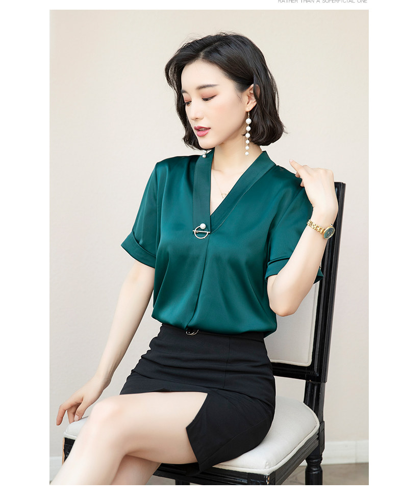 화이트 쉬폰 셔츠 여성 기질 반팔 와이드 파인 여름 패션 새틴 여름 반소매 전문 작업복 화이트 셔츠