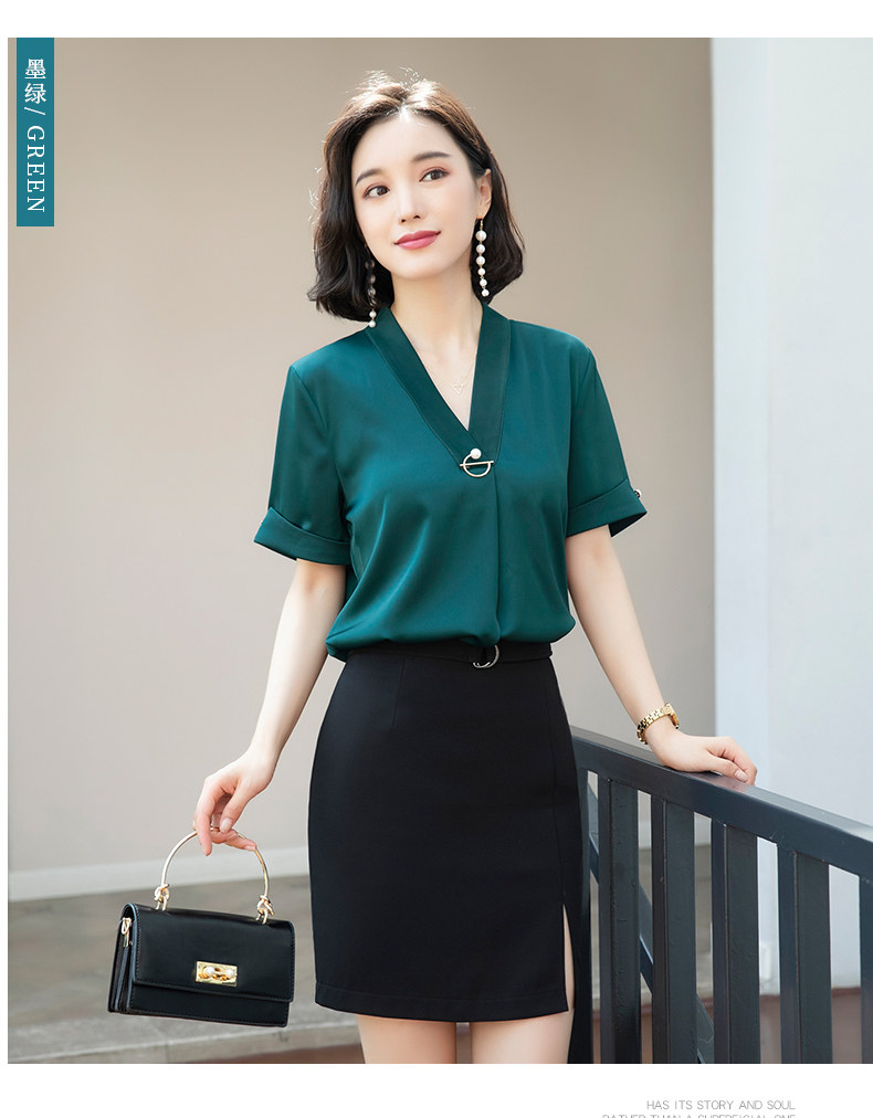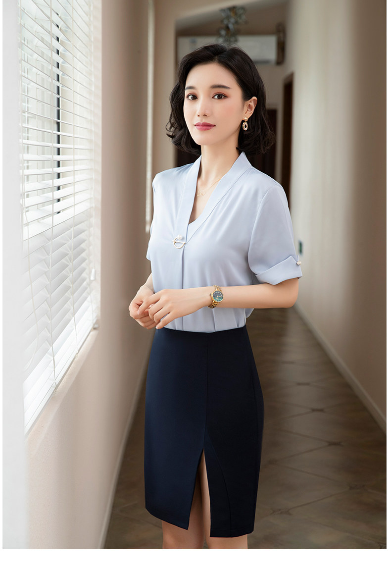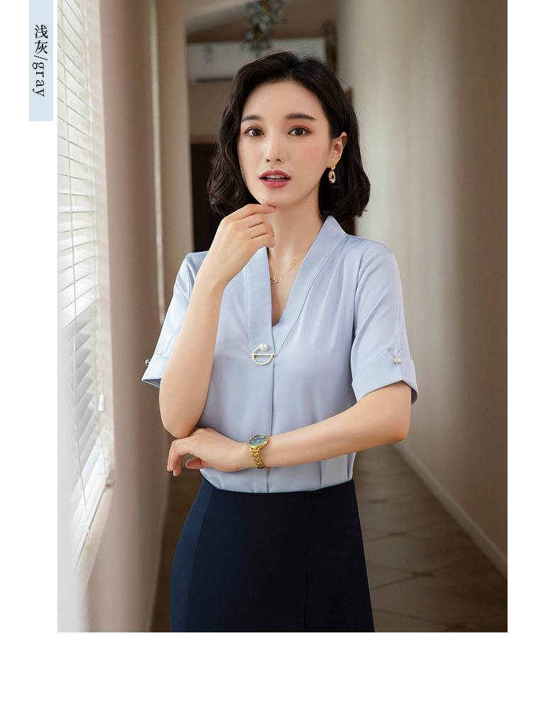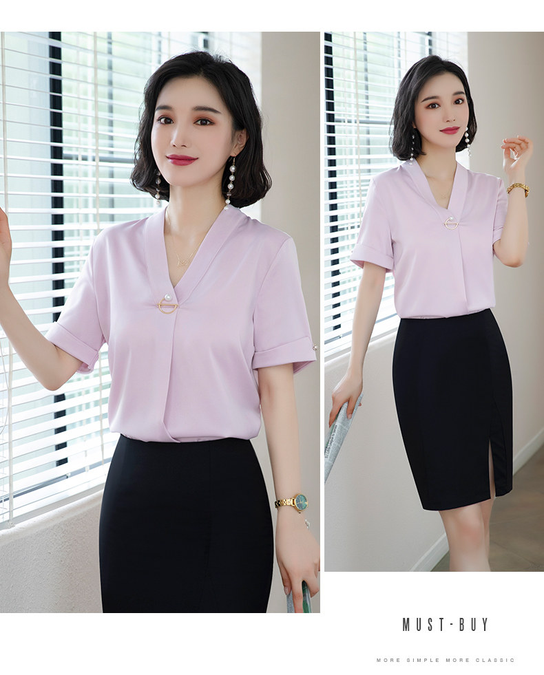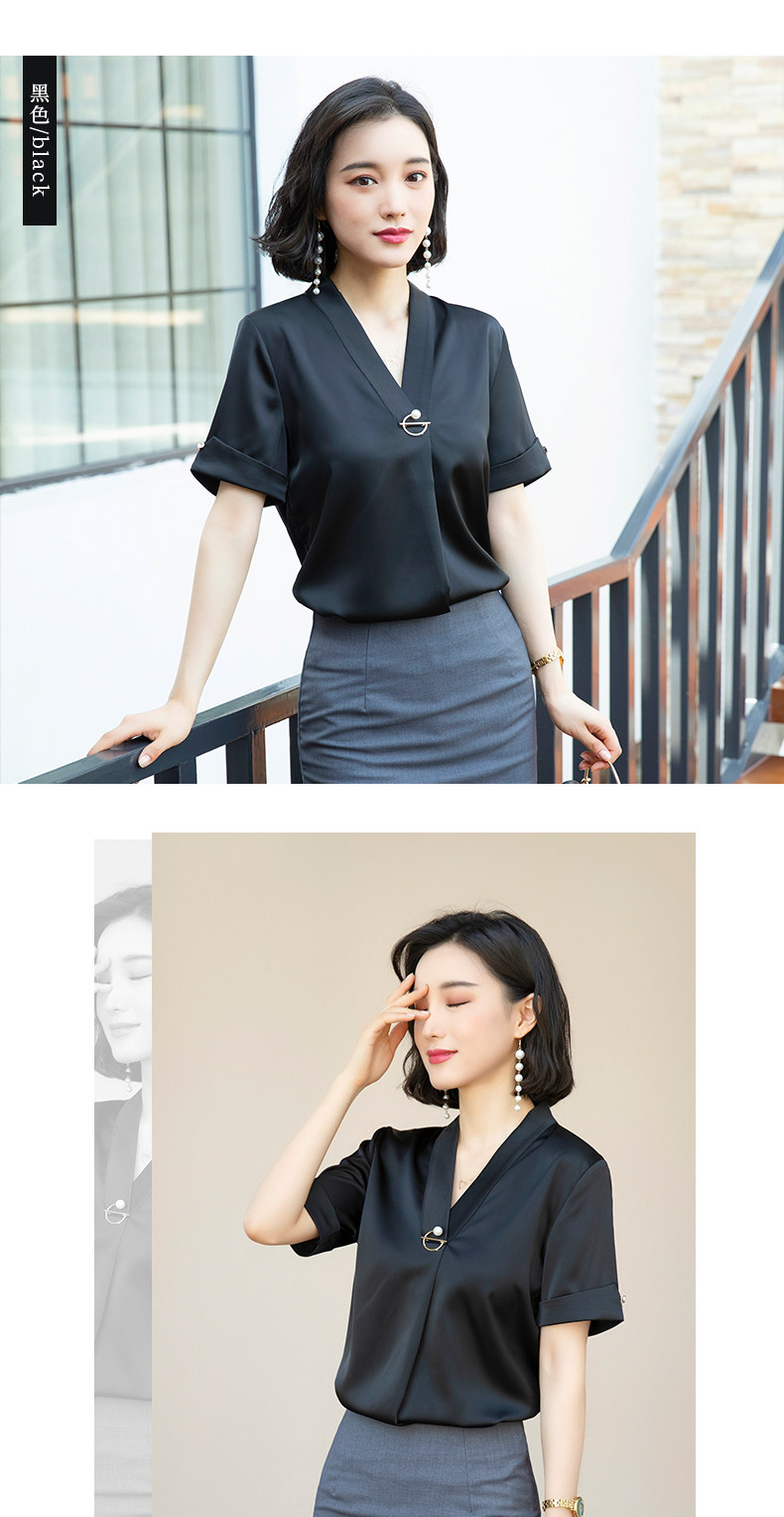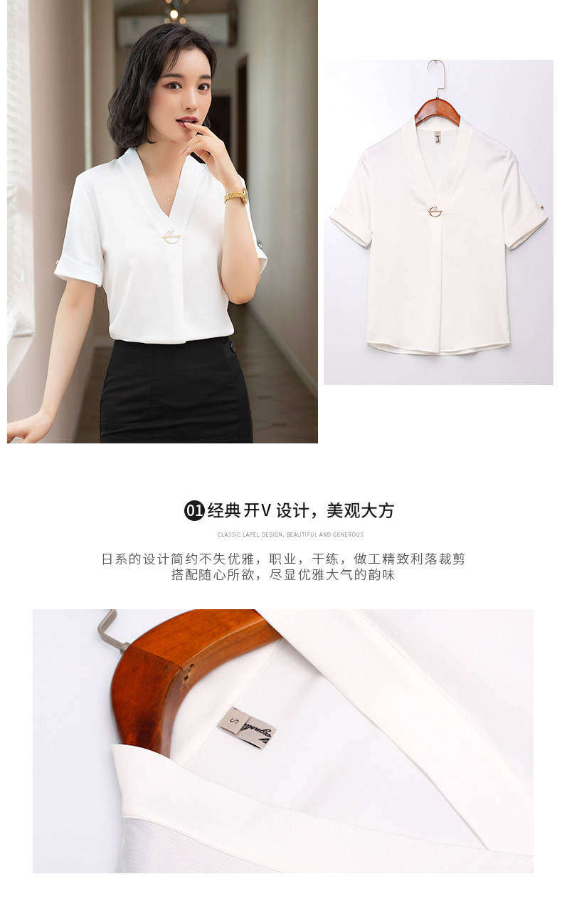 화이트 쉬폰 셔츠 여성 기질 반팔 와이드 파인 여름 패션 새틴 여름 반소매 전문 작업복 화이트 셔츠