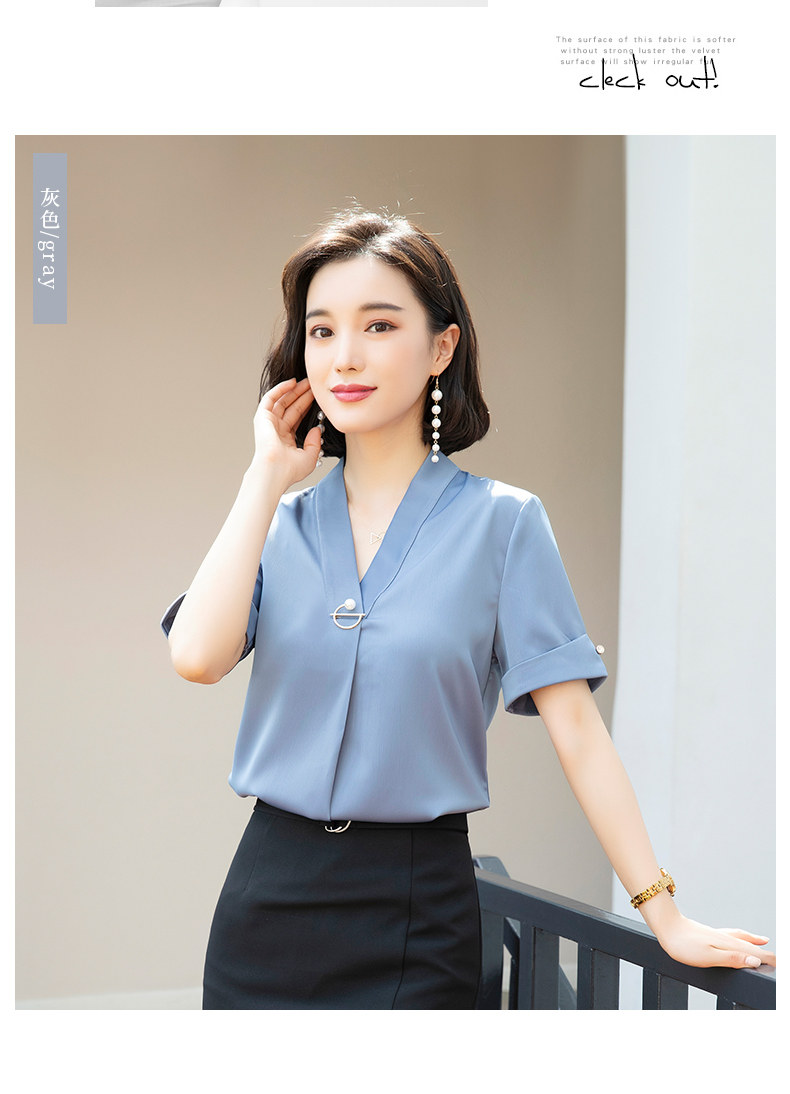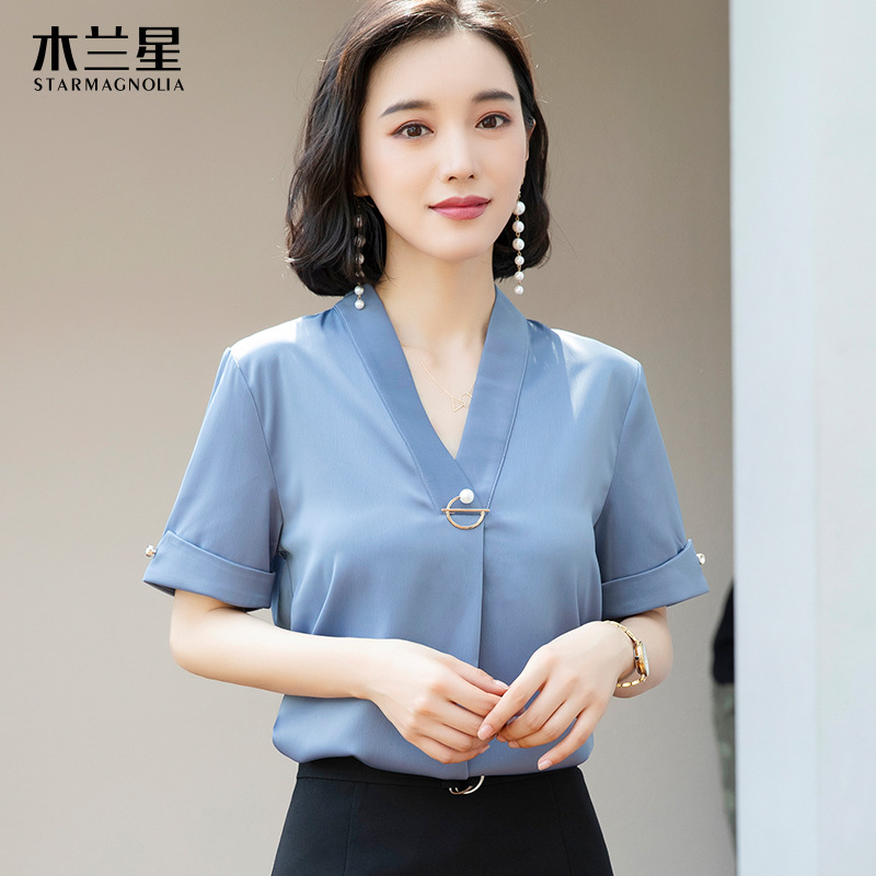화이트 쉬폰 셔츠 여성 기질 반팔 와이드 파인 여름 패션 새틴 여름 반소매 전문 작업복 화이트 셔츠스토어 가기