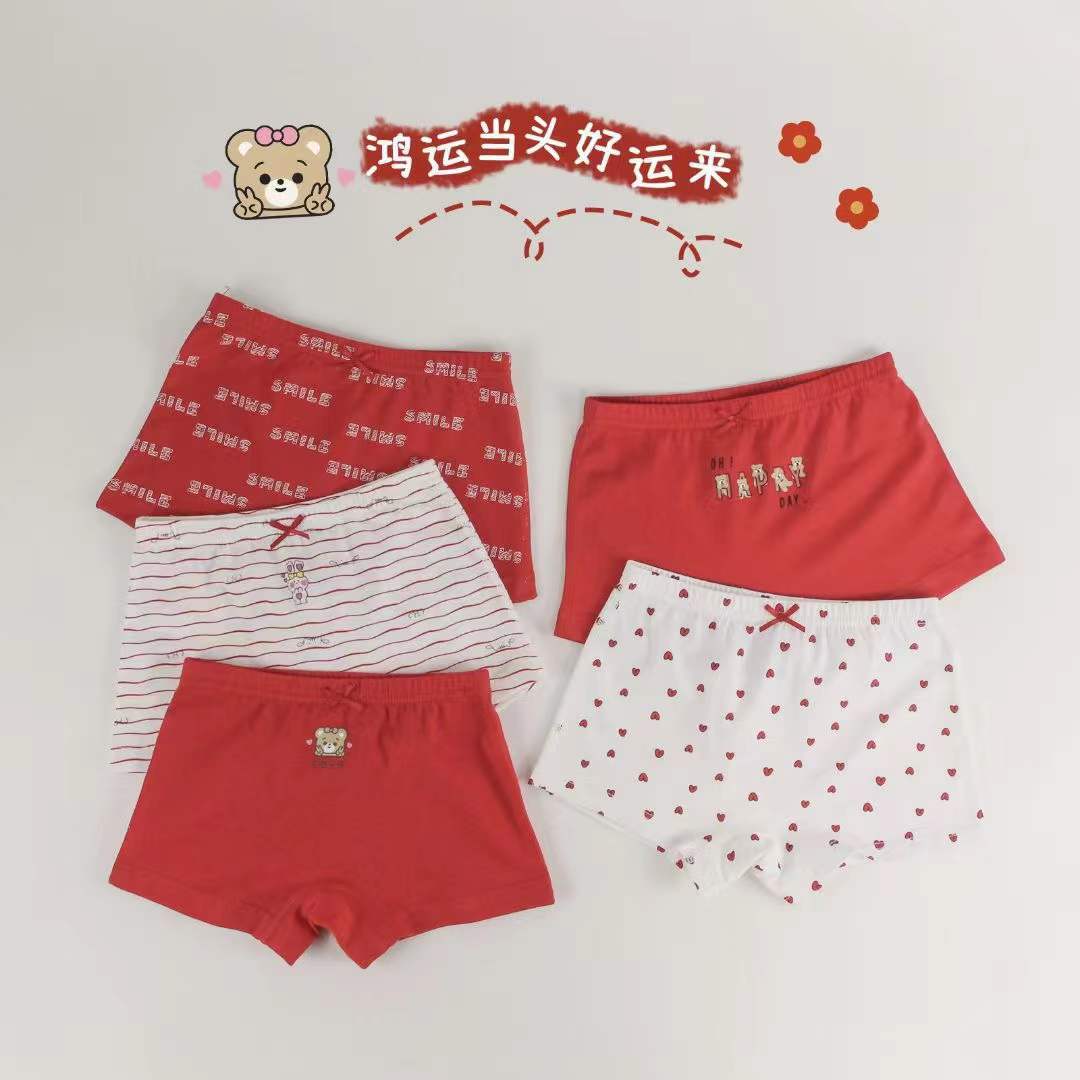 공장 직접 공급 콜라 배 속옷 소녀 면화 클래스 만화 빨간 속옷 아기 어린이 복서 반바지 5 팩