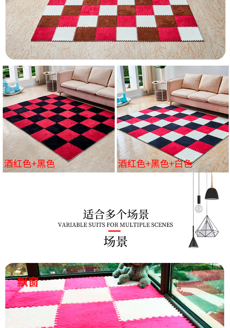 패치 워크 벨벳 바닥 매트 거실 침실 풀 카펫 패딩 긴 벨벳 미끄럼 방지 에바 폼 매트 무료 절단