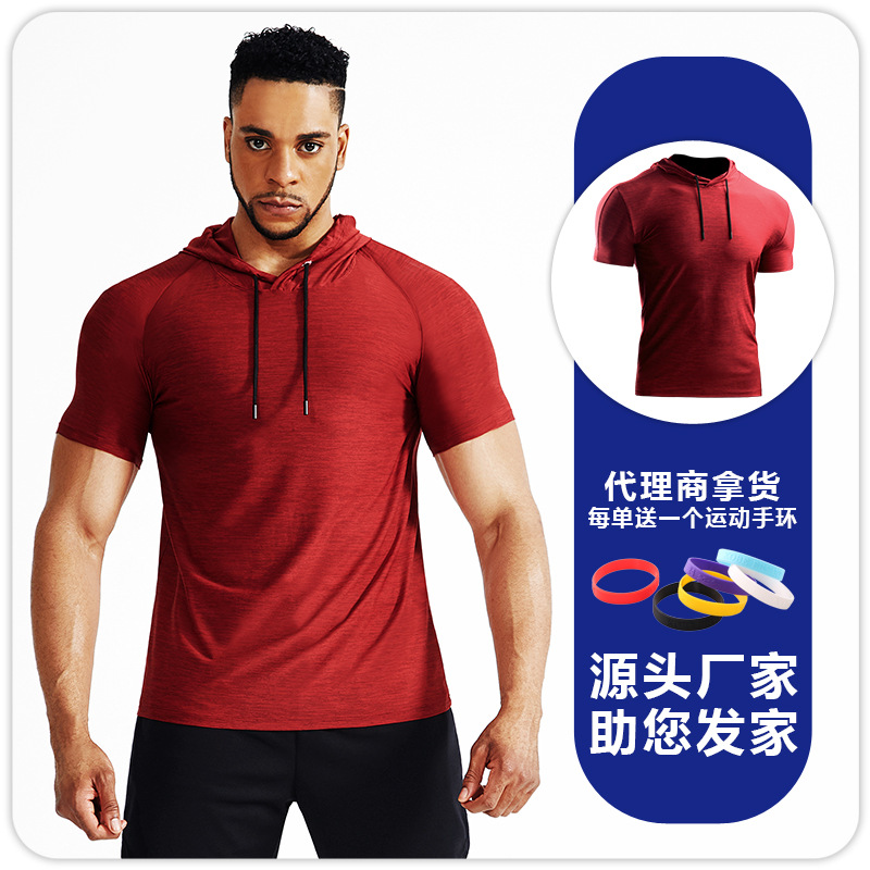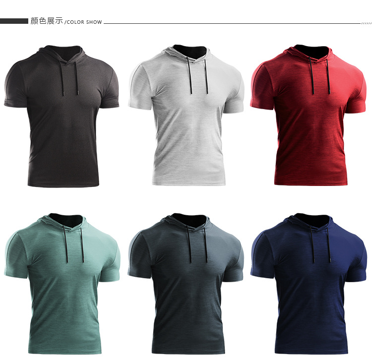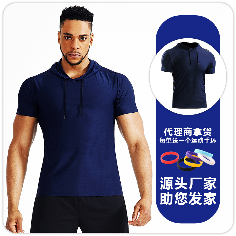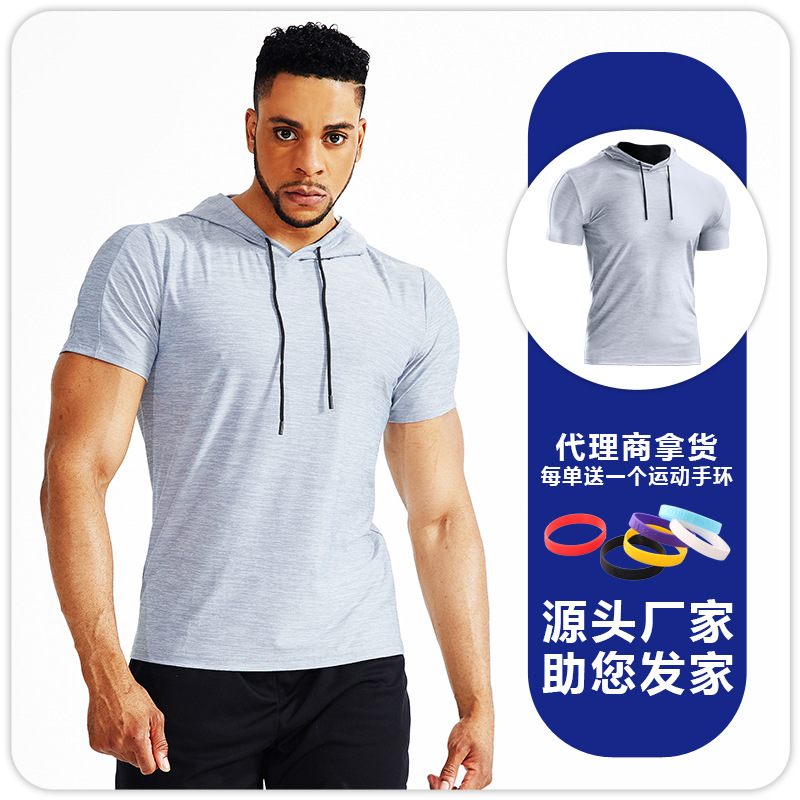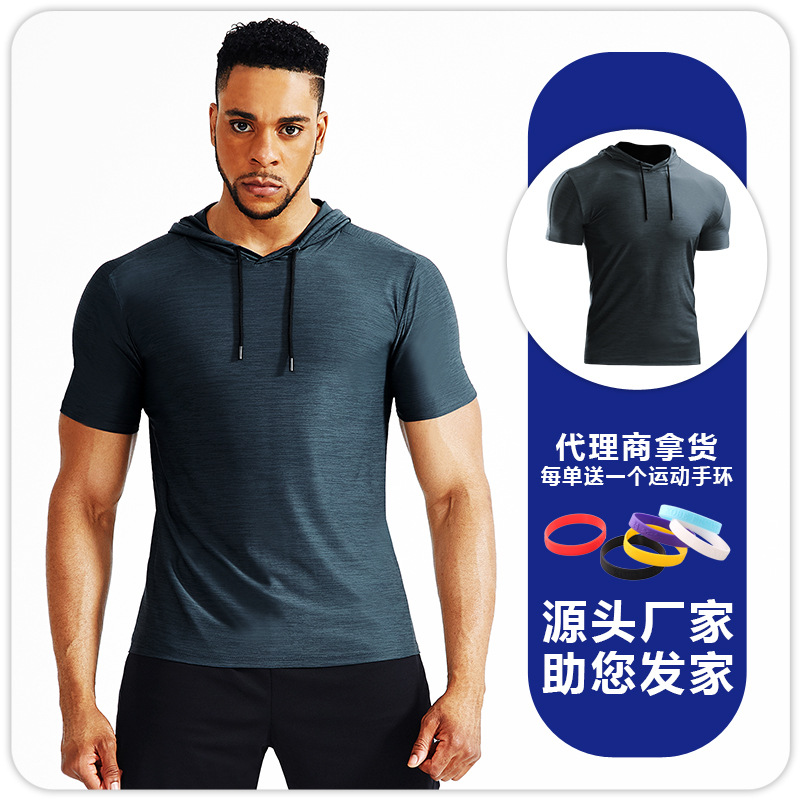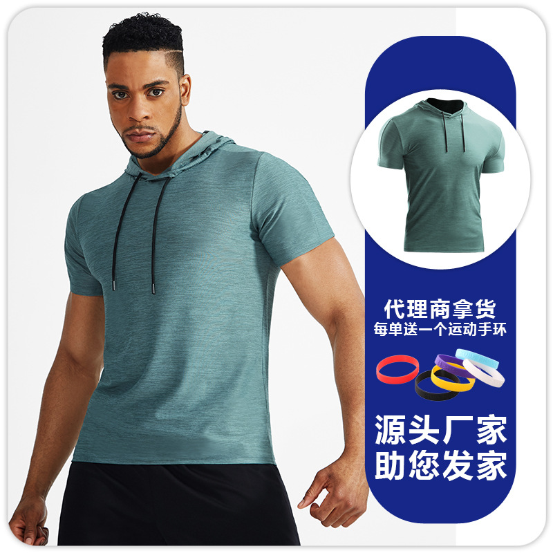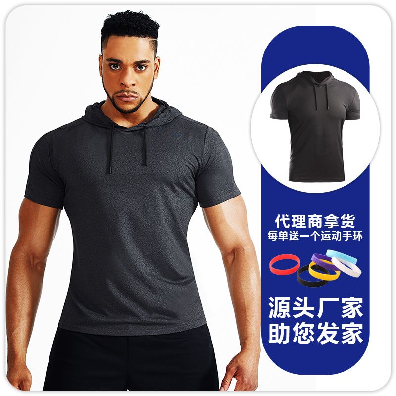 여름 트렌디 브랜드 후드 반팔 티셔츠 남성용 스웨터 초대형 유행 루즈한 스포츠 후드 후드 반 소매스토어 가기