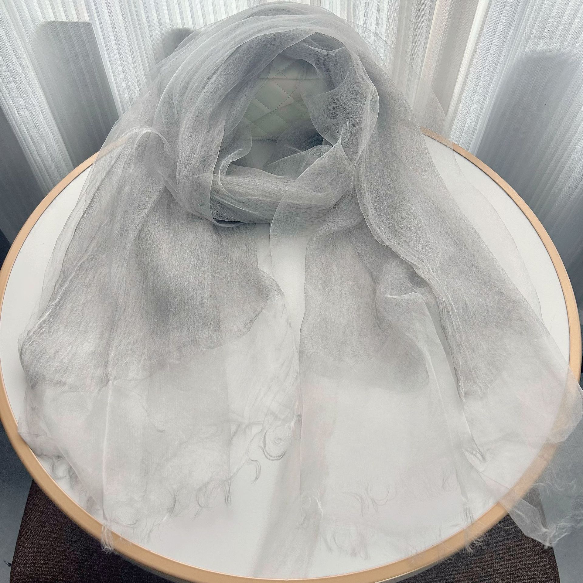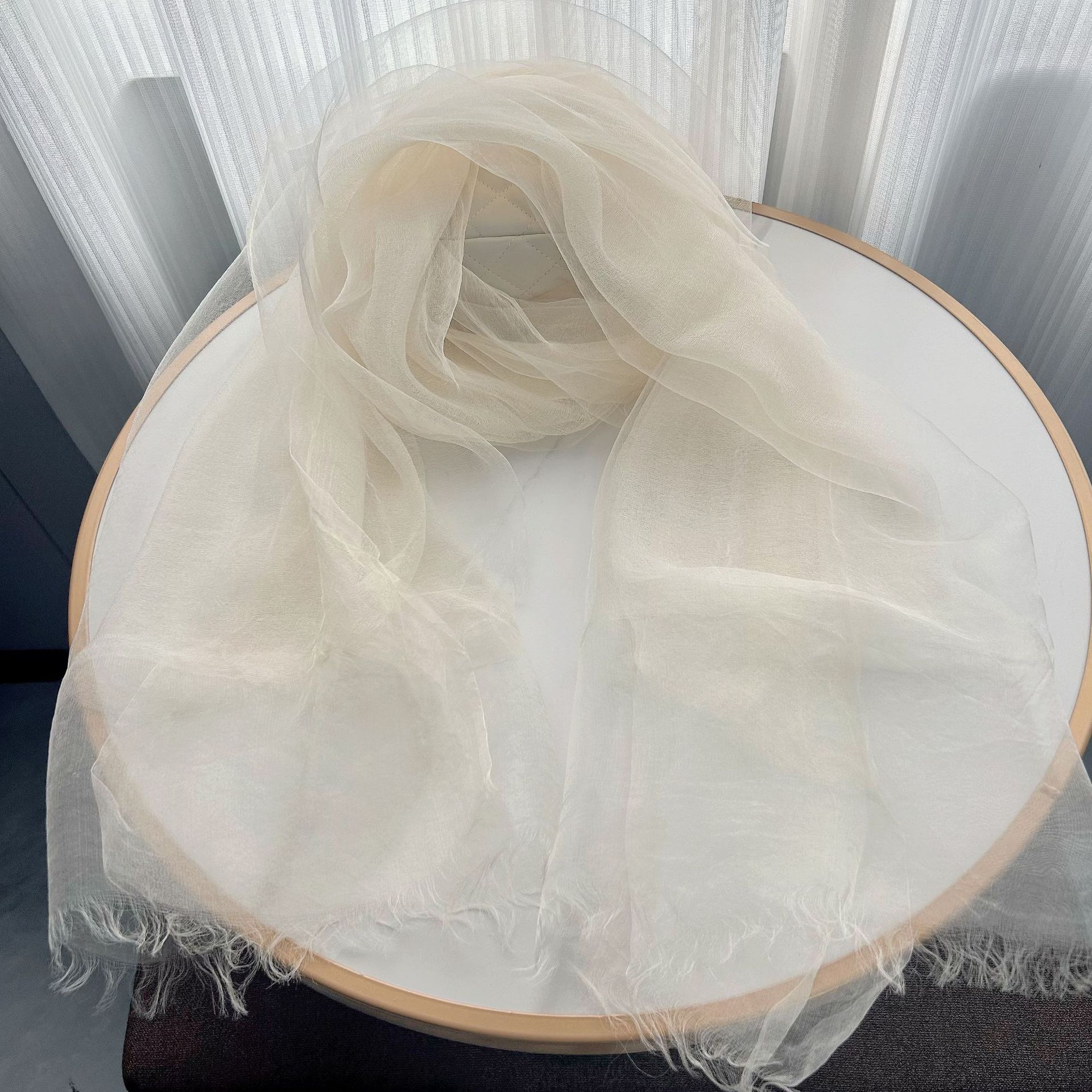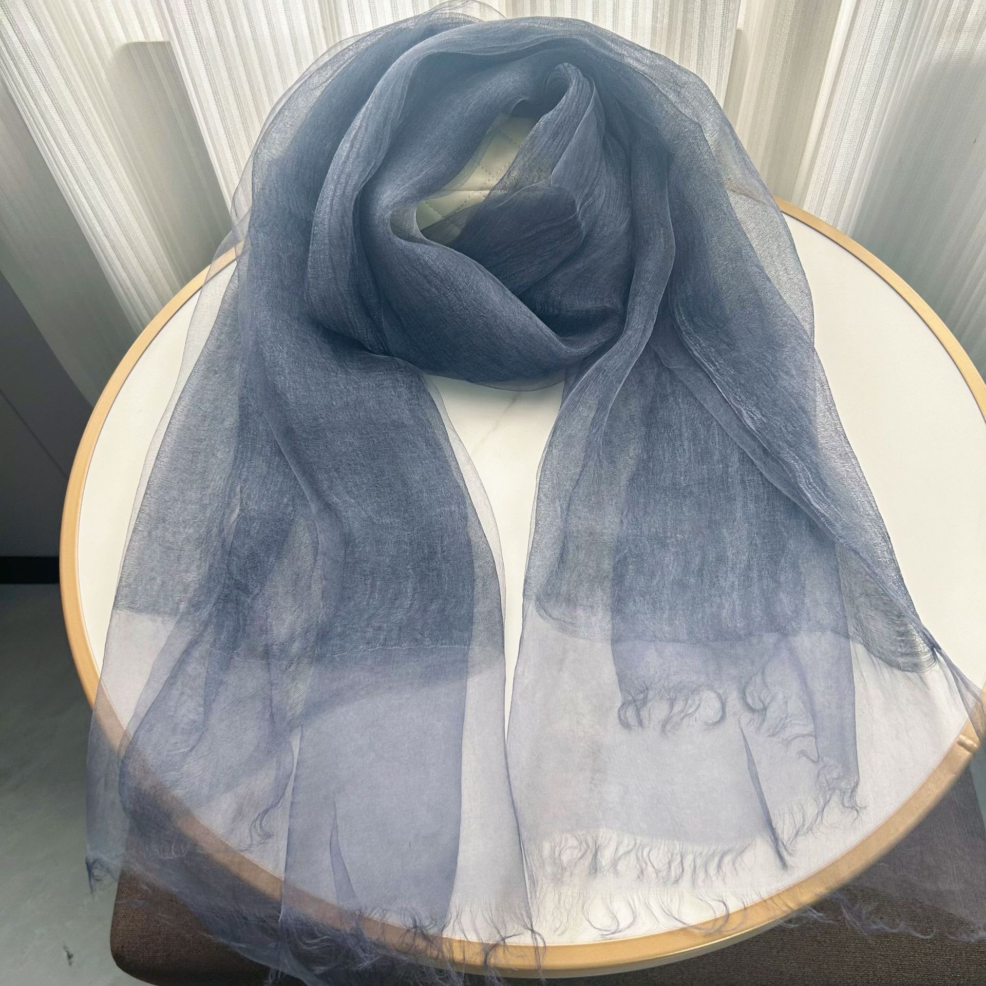 여성용 이중 실크 스카프, 봄 여름용 얇은 단색 실크 스카프, 패셔너블하고 심플한 여성용 자외선 차단 숄, 대외 무역 상품스토어 가기
