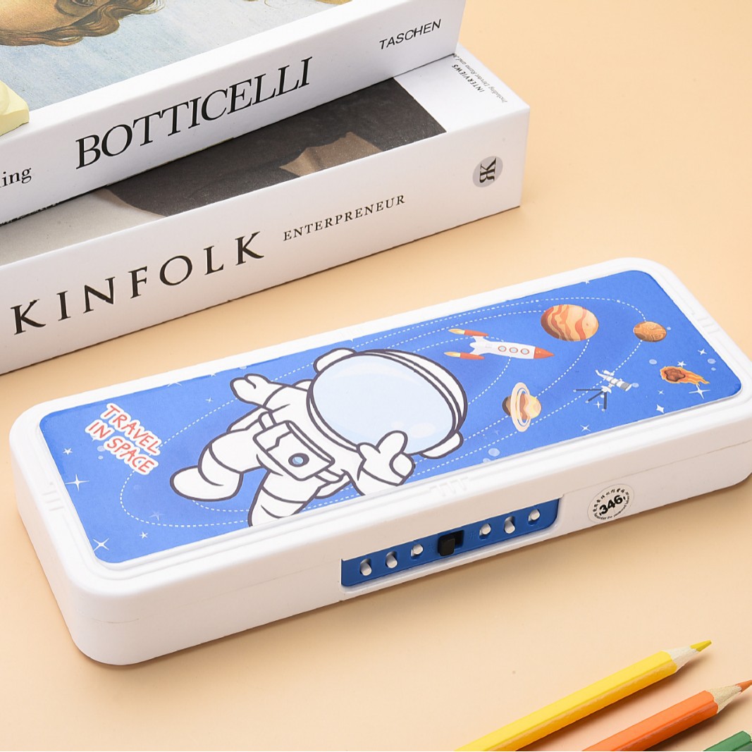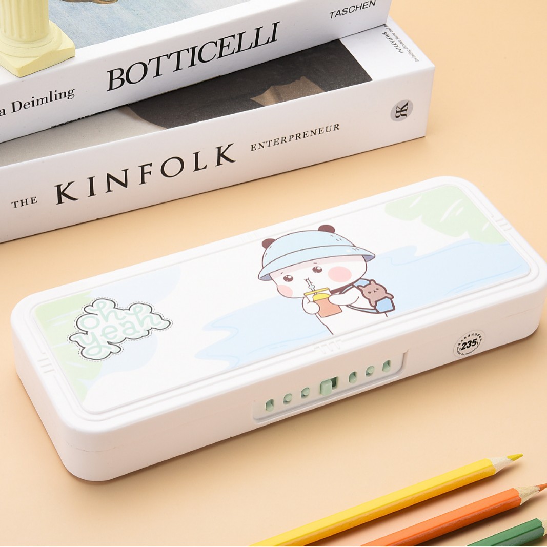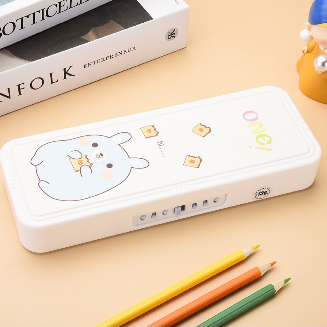 초등학교 만화 문구 상자 더블 레이어 대용량 다기능 플라스틱 펜 상자 크리 에이 티브 유니버설 귀여운 연필 상자스토어 가기