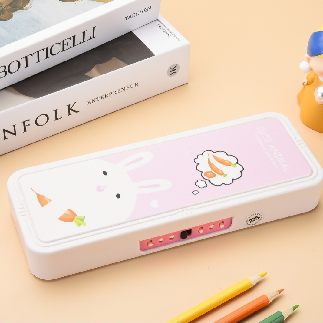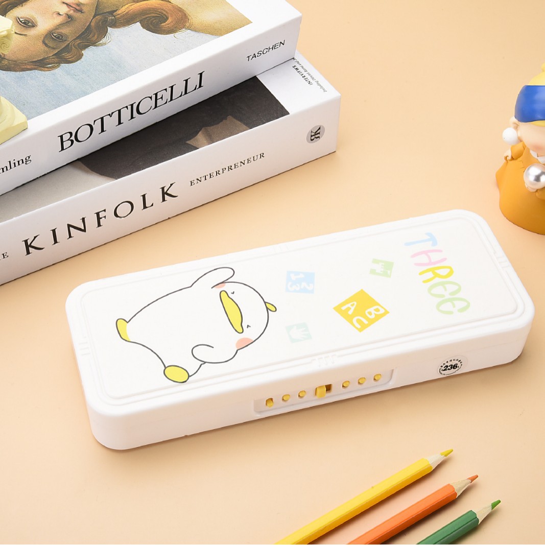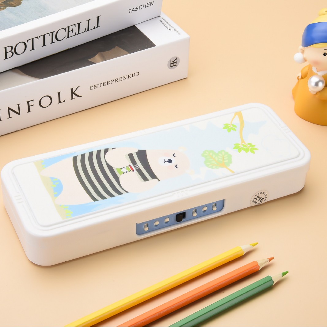 초등학교 만화 문구 상자 더블 레이어 대용량 다기능 플라스틱 펜 상자 크리 에이 티브 유니버설 귀여운 연필 상자
