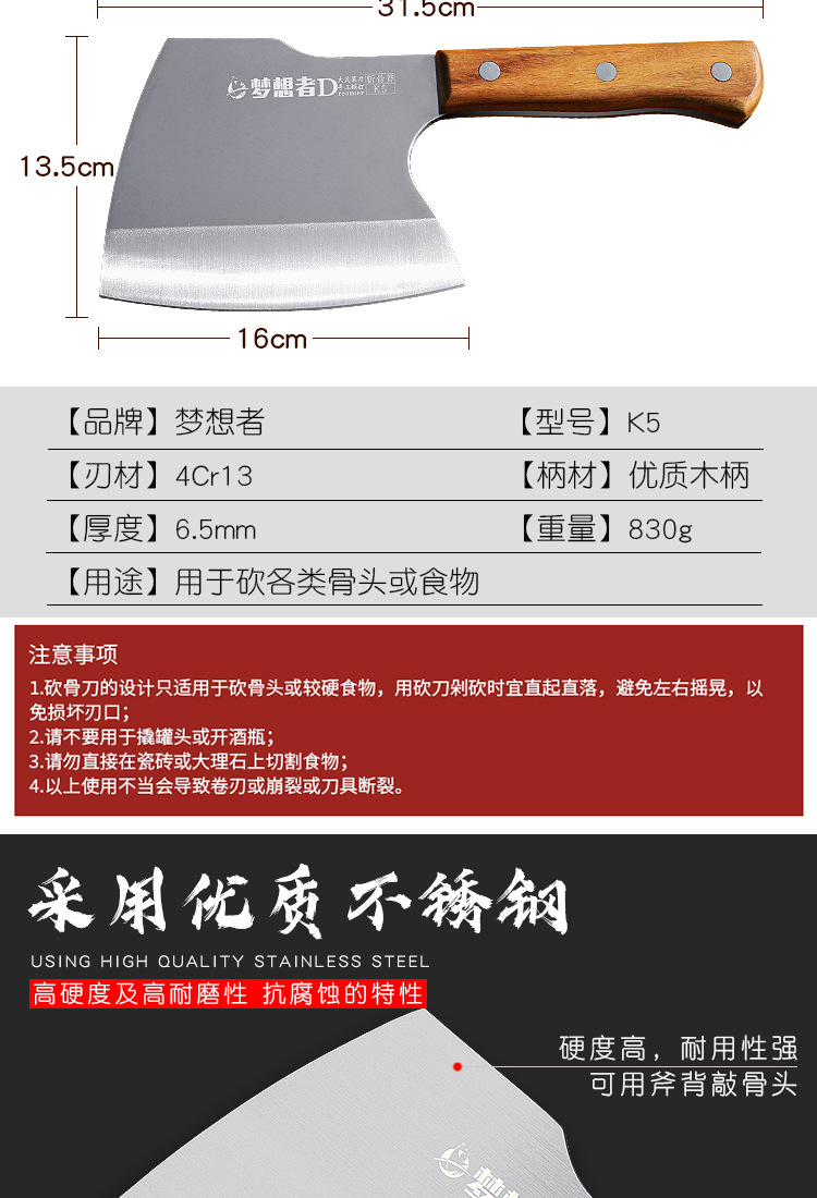 • 0.95kg K5 수제 뼈 자르기 도끼