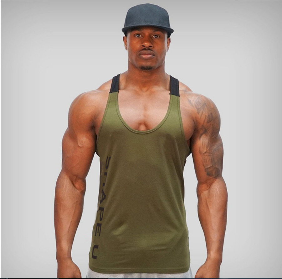 재고 이베이 피트니스 봄과 여름 새로운 남자의 U 칼라 대비 색상 스포츠 조끼 남자의 통기성 러닝 트레이닝 의류 탑