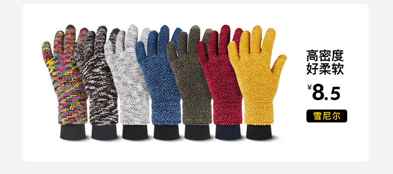 跨境爆款成人女男冬季双层触屏针织手套加绒加厚防寒骑行保暖手套