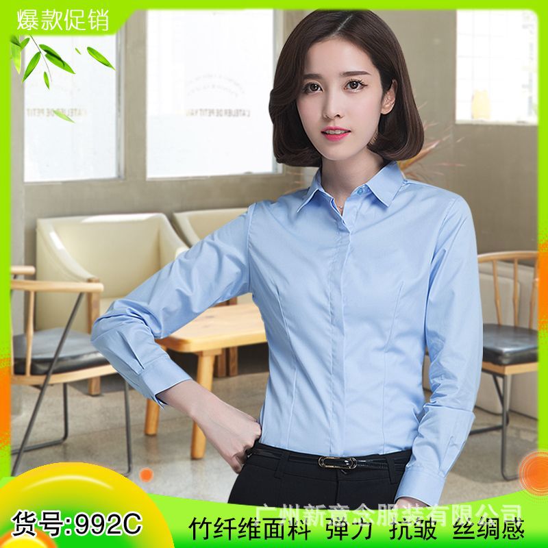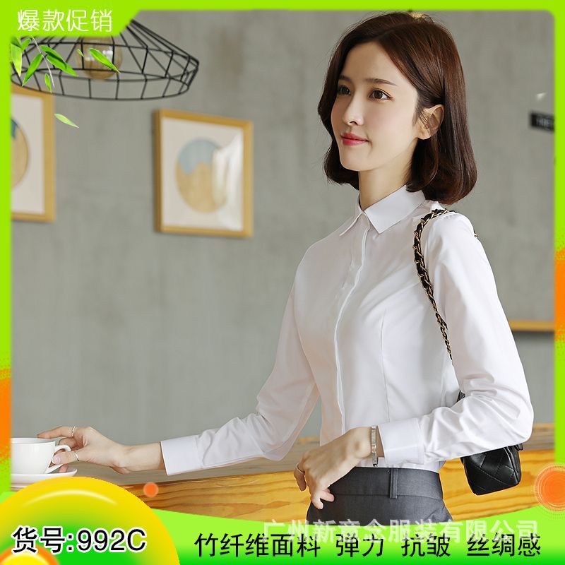 스트레치 블라우스 긴 소매 전문 비즈니스 작업 셔츠 유니폼 대나무 섬유 쉬폰 화이트 아이스 실크 공장 제조업체스토어 가기