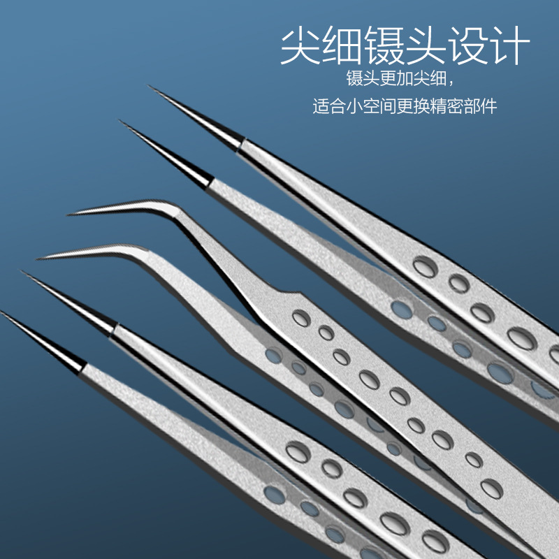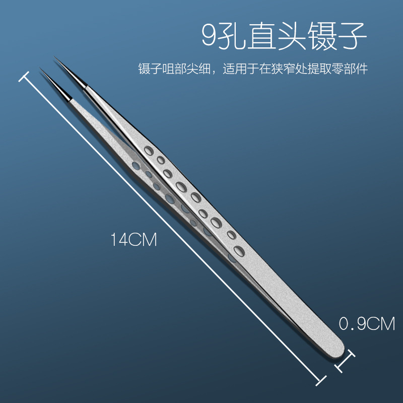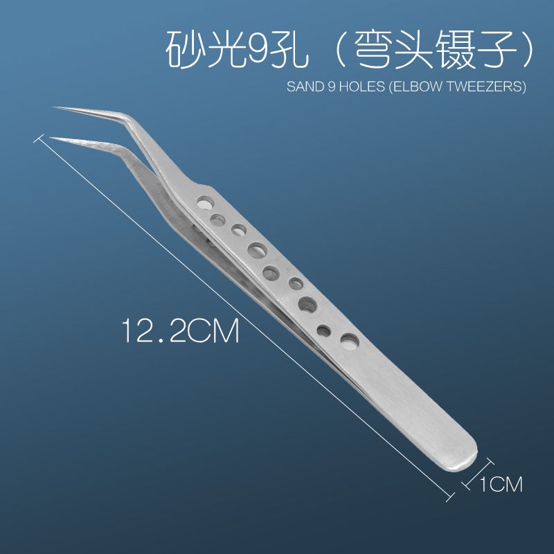뜨거운 판매 핀셋 스테인레스 스틸 9 홀 팔꿈치 스트레이트 헤드 샌드 블라스팅 고정밀 접목 속눈썹 꽃 클립 새의 둥지 선택 헤어 클립