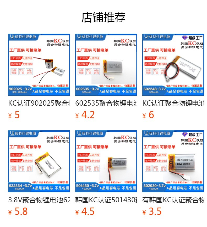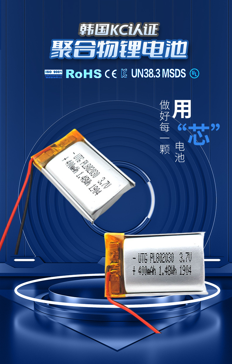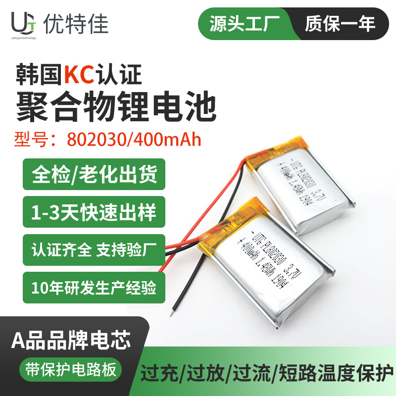 802 030 400mAh 폴리머 3.7V 통신 장비 미용 기기 마스크 히터 (KC 인증 포함)스토어 가기