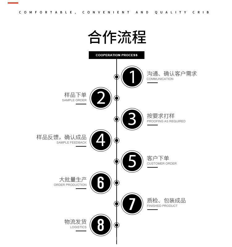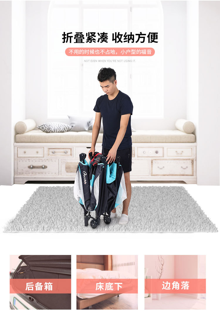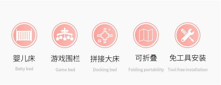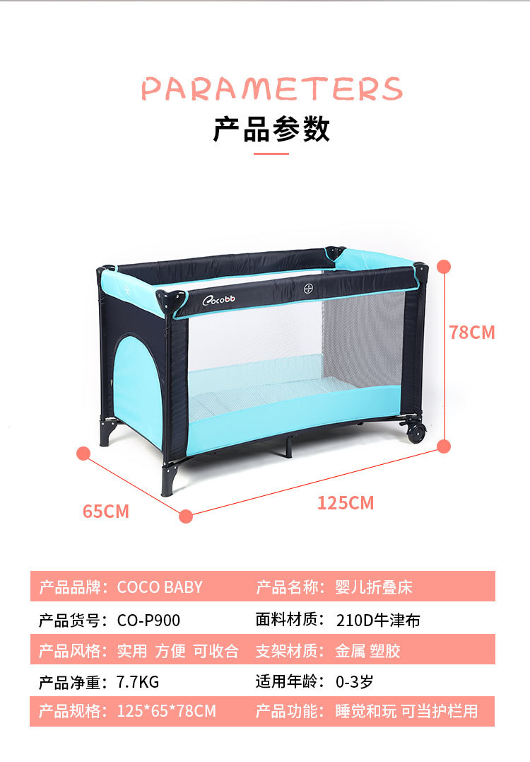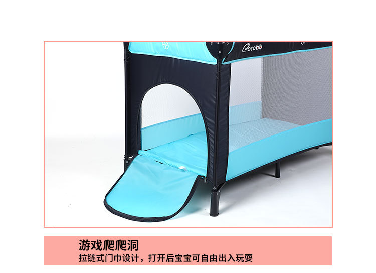 产品内容:基本床、2个刹车轮,爬爬洞/游戏洞,床垫,铁管,牛津布,塑胶,手提收纳袋,英文说明书,五层中性包装箱;
