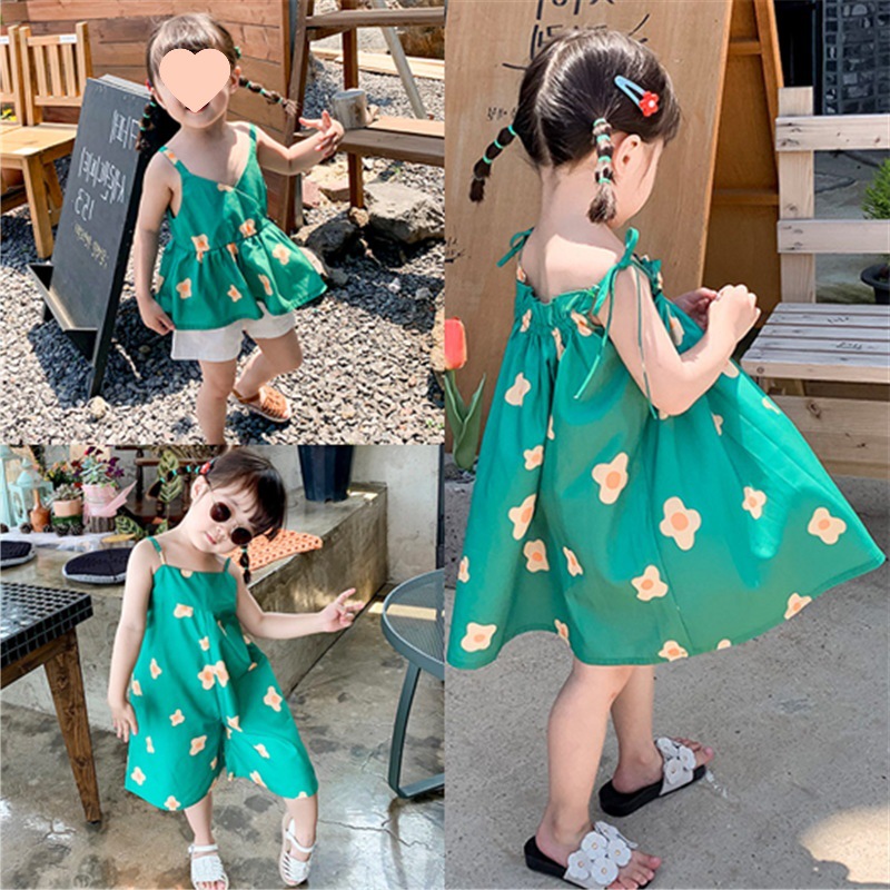 여아 쓰리피스 플라워 슬링 셔츠 원피스 플러스 바지 3-8 세 여름 새로운 대외 무역 아동복스토어 가기
