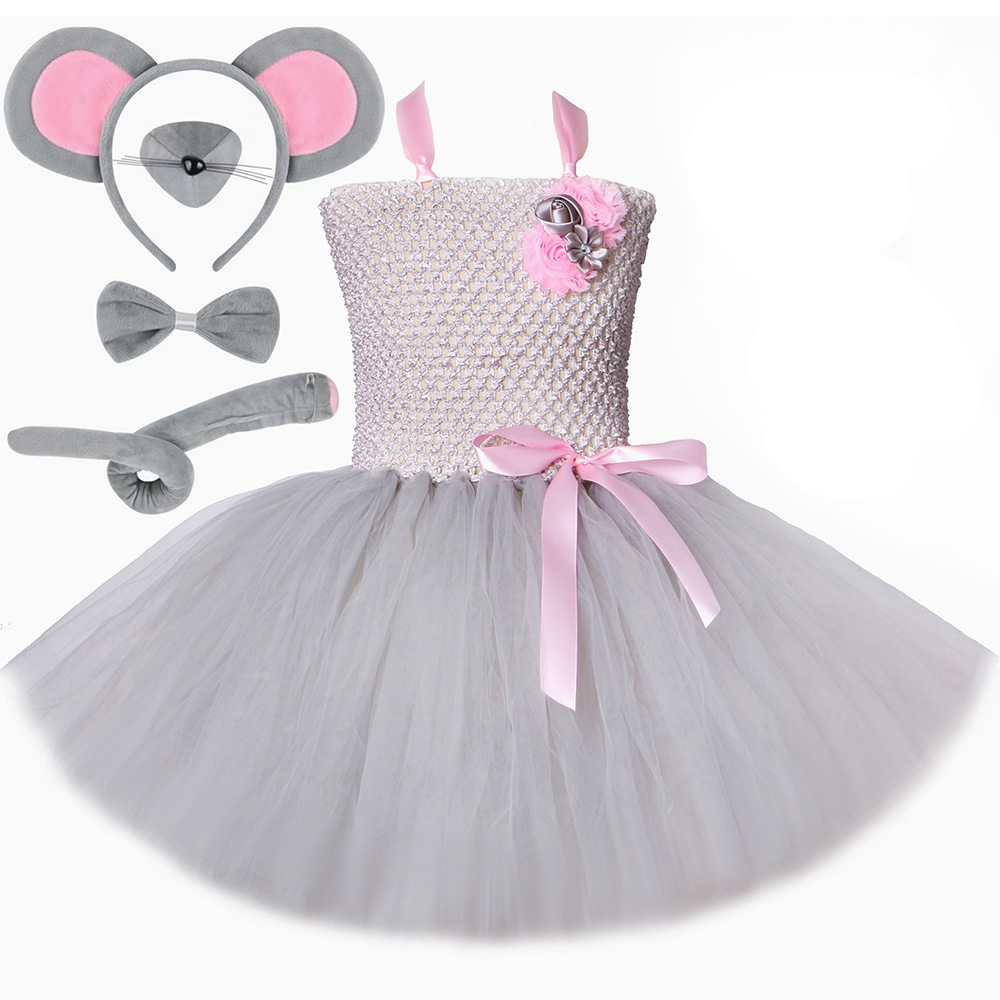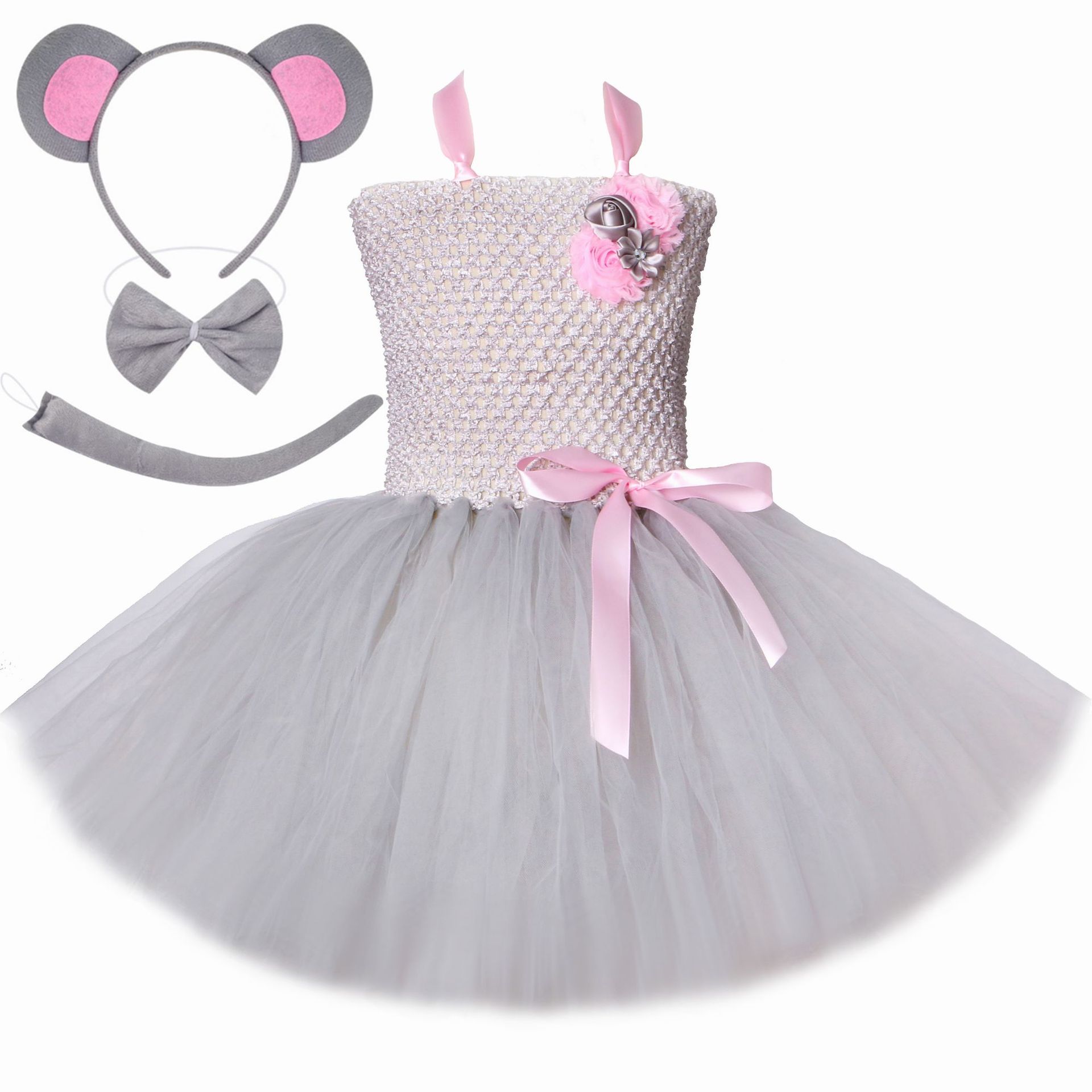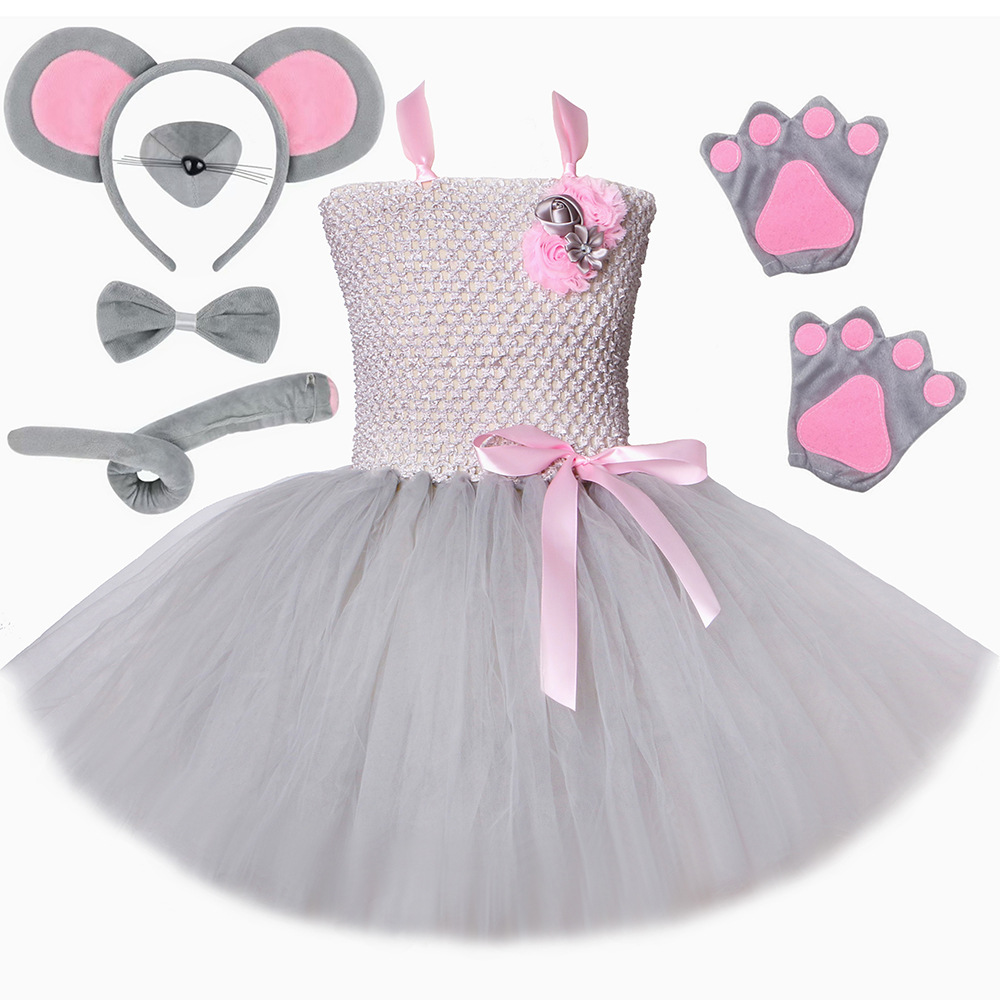회색 만화 쥐 캐릭터 튜튜 드레스 어린이 메쉬 드레스 유럽 및 미국 소녀 휴일 파티 의상 유아 및 어린이용