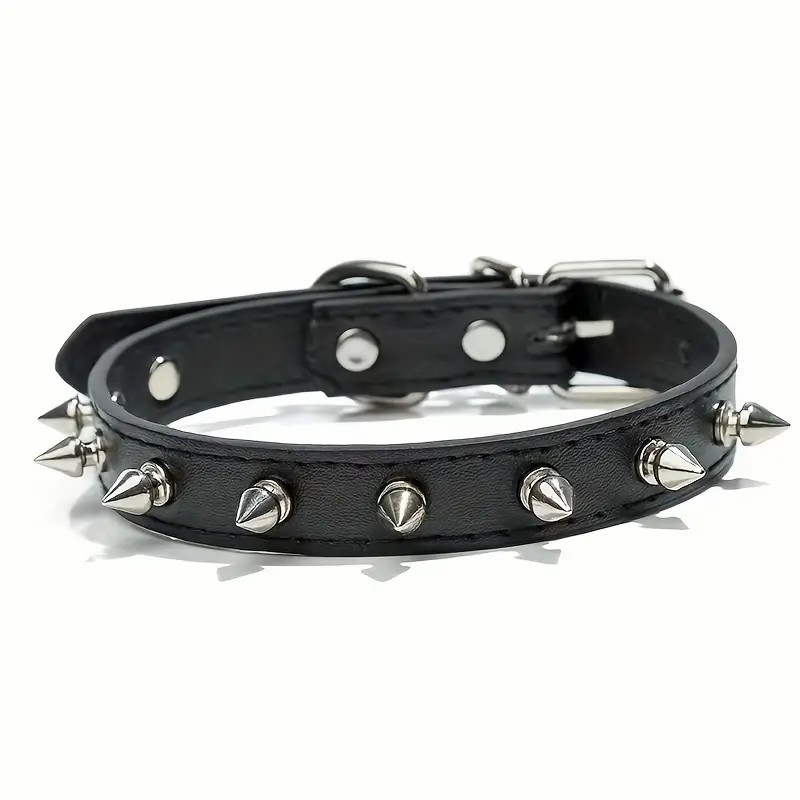 펑크 스타일 싱글 행 리벳 안티 바이트 애완 동물 칼라 중소 개 PU 개 칼라 개 가죽 끈 공장 직접 판매