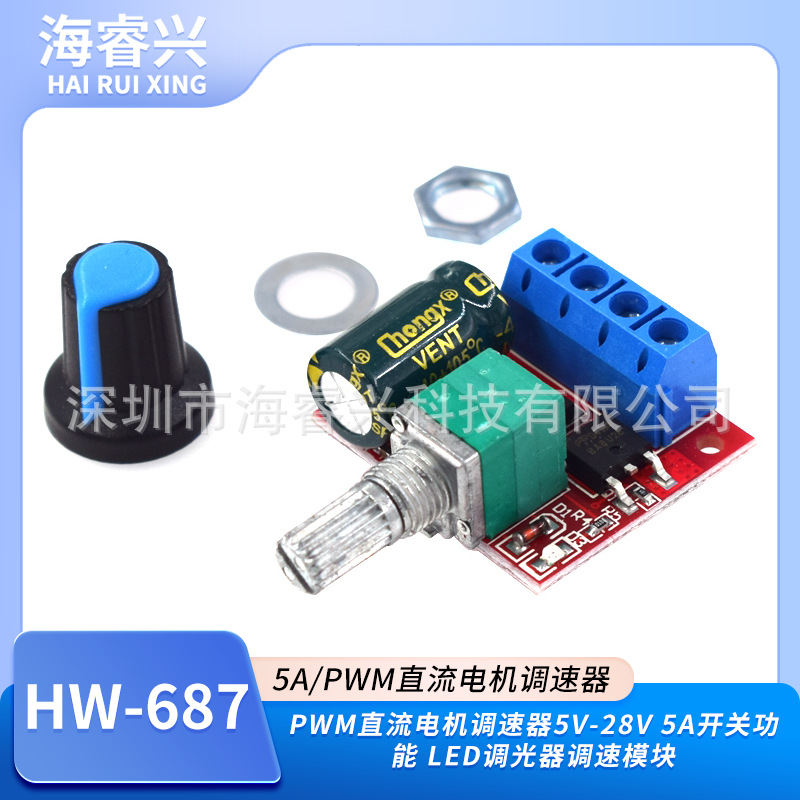 DC 모터 총재 모듈 5V-28V5A 스위치 기능 LED 조광기 속도 제어 모듈