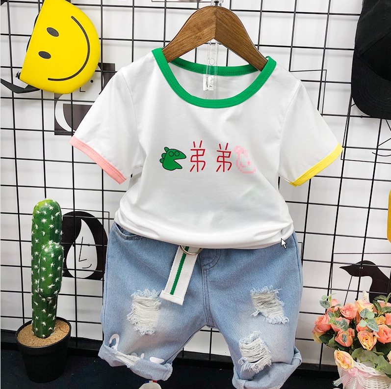 어린이 여름 반팔 세트 1-3-5 세 아기 한국 티셔츠 프린트 반팔 반바지 투피스 세트