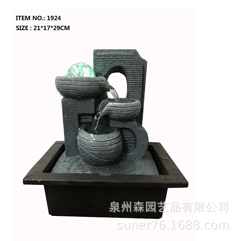 수지 공예 기하학적 물 분수 장식 실내 사무실 데스크탑 풍수 눈 분무 가습기 장식