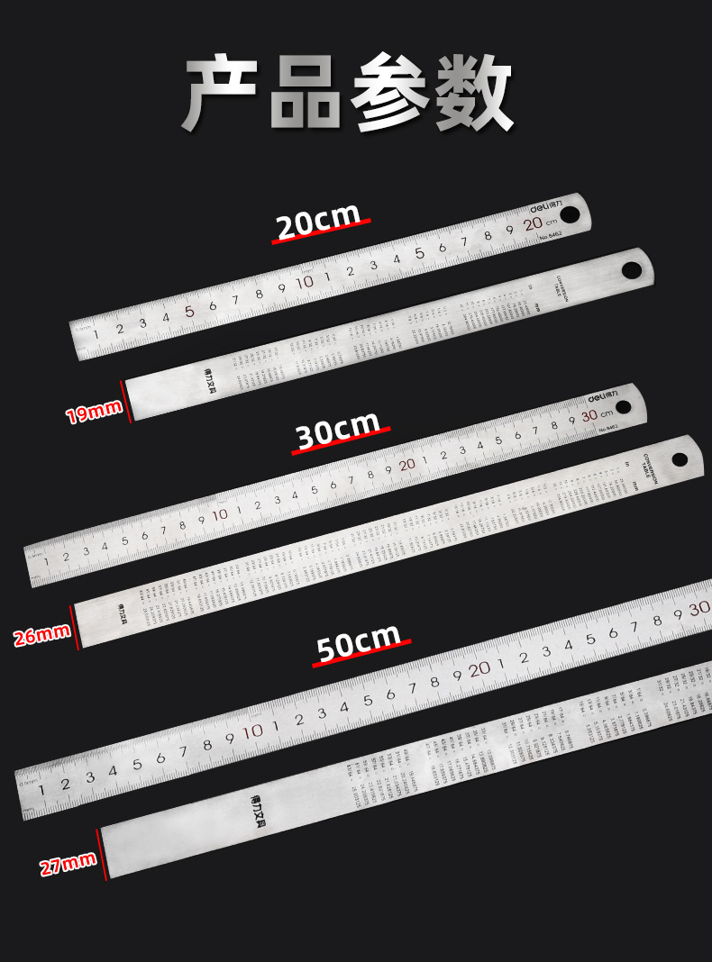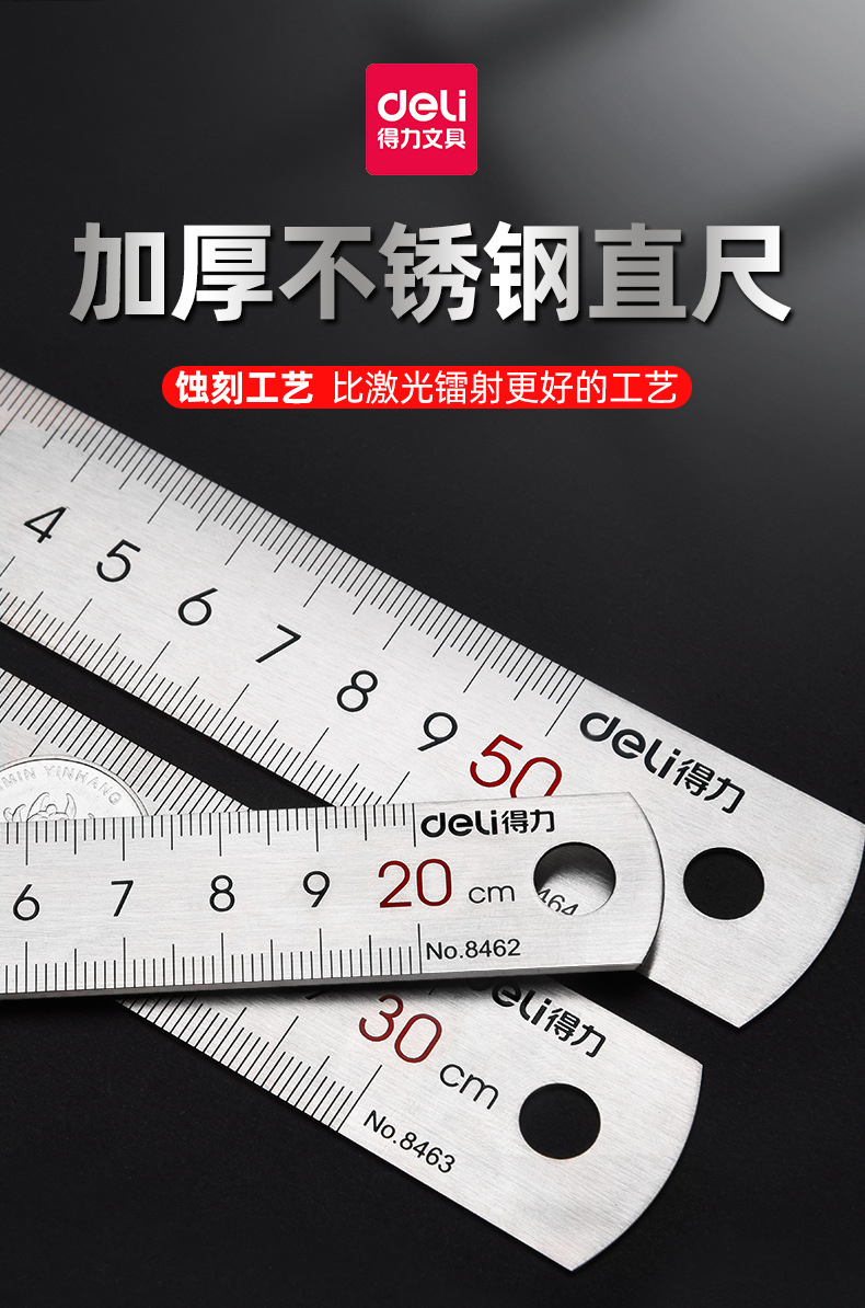 델리 두꺼운 강철 통치자 15/20/30/50cm 스케일 센티미터 통치자 그리기 강철 통치자 8462 통치자 8463