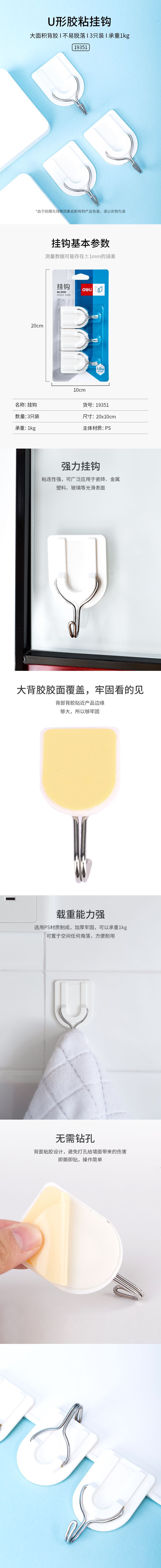 델리 접착 후크 19350 후크 접착 후크 펀치없는 주방 도어 후면 접착 후크 플라스틱 후크