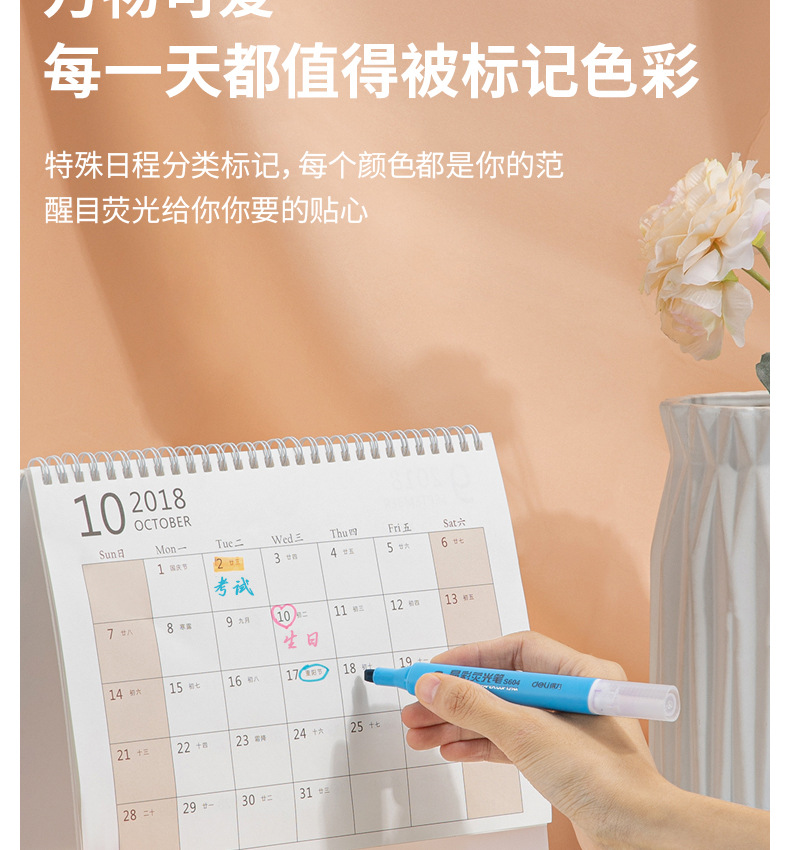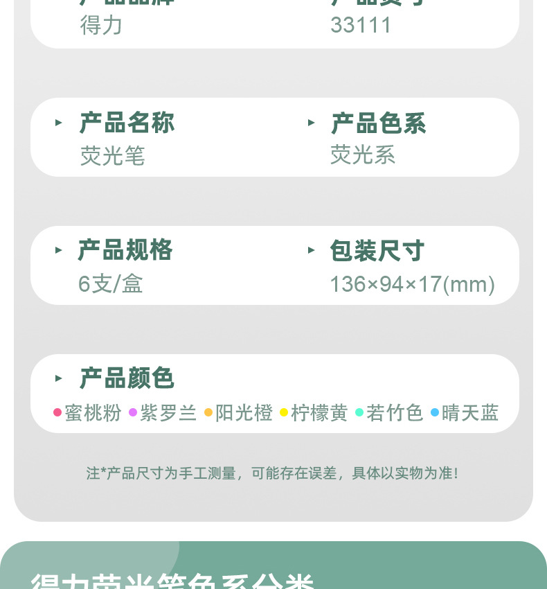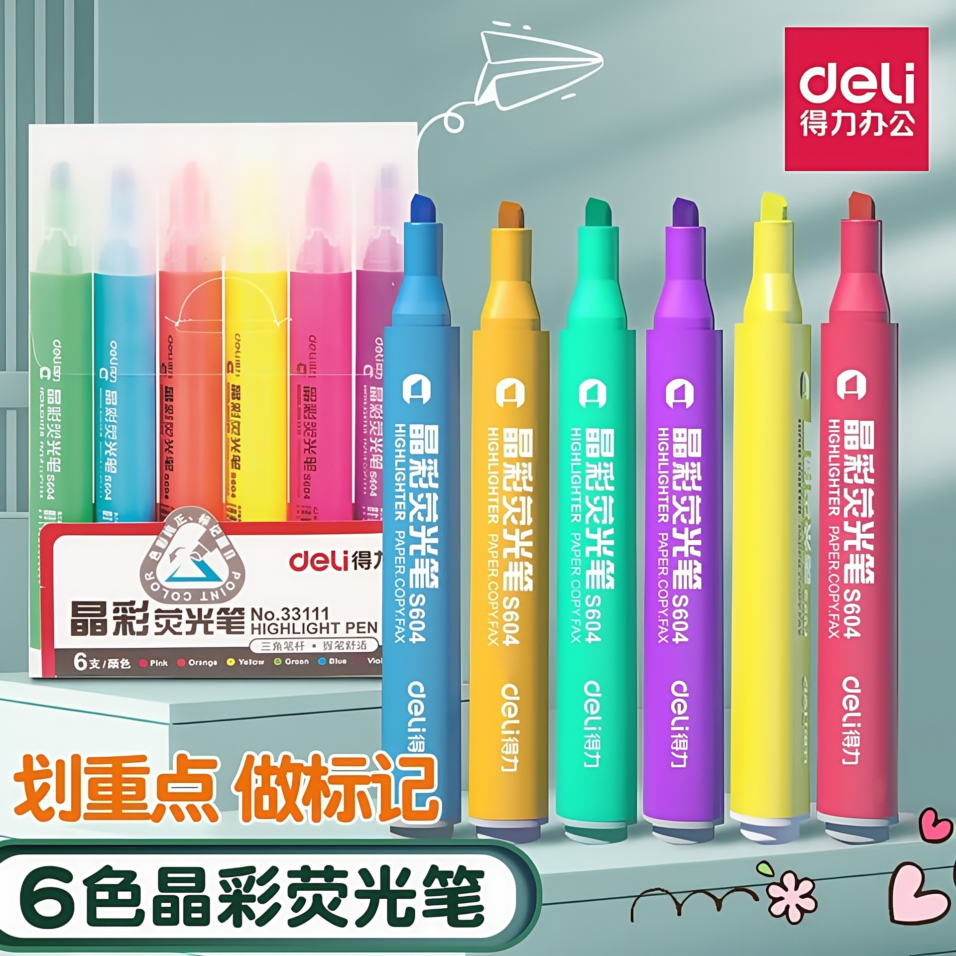 델리 형광펜 세트 33111 컬러 마커 펜 6 색 팩 형광 마커 펜 형광 마커 펜 눈에 띄는 펜