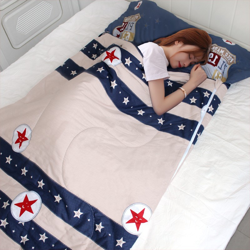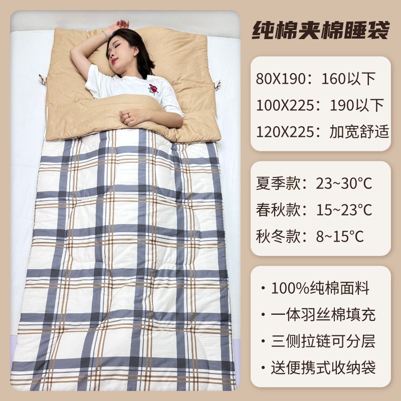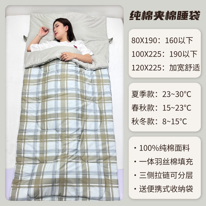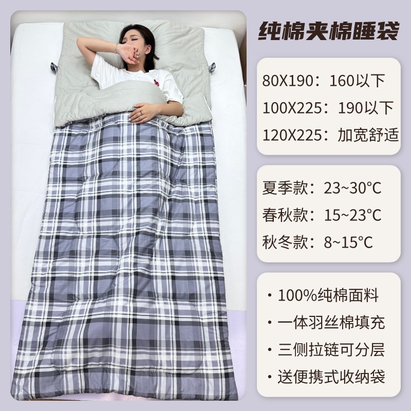 하오룬치 어린이 및 성인용 침낭, 싱글/더블, 넓고 두꺼운, 발차기 방지 이불, 사무실용 침낭, 순면, 심플 스타일스토어 가기