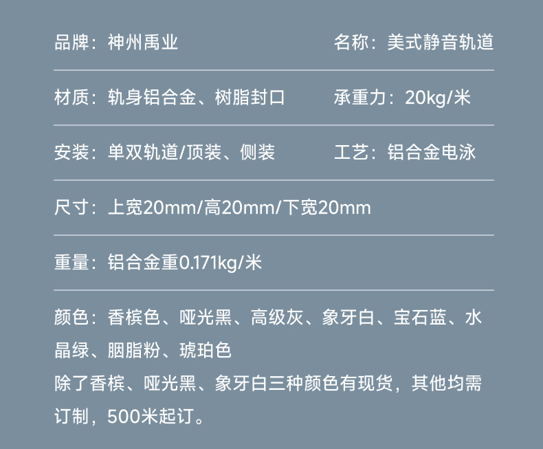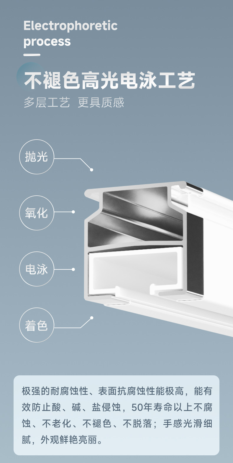 轨道工艺:表面工艺为电泳,纹理清晰,不易掉色