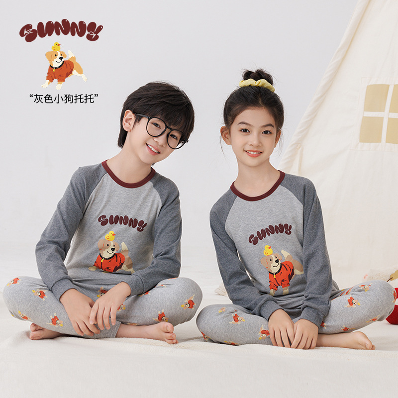 새로운 어린이 가을 옷 가을 바지 면 중소 규모 어린이 여성 가을과 겨울 가정 의류 가을 잠옷베이스 남성 속옷 세트스토어 가기