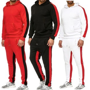 厂家直销亚马逊爆款大码加绒连帽卫衣男运动套装休闲男士连帽衫