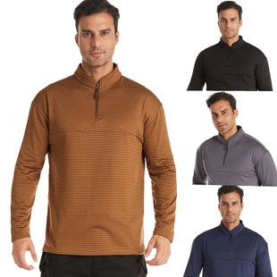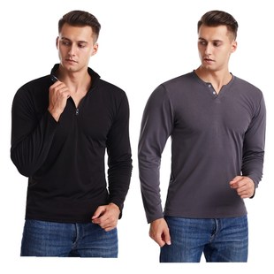 2020外贸修身圆领长袖t恤男手臂拉链个性欧美风休闲打底衫T恤男