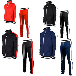 厂家直销亚马逊爆款外贸卫衣男拼色立领男式开衫卫衣休闲运动套装